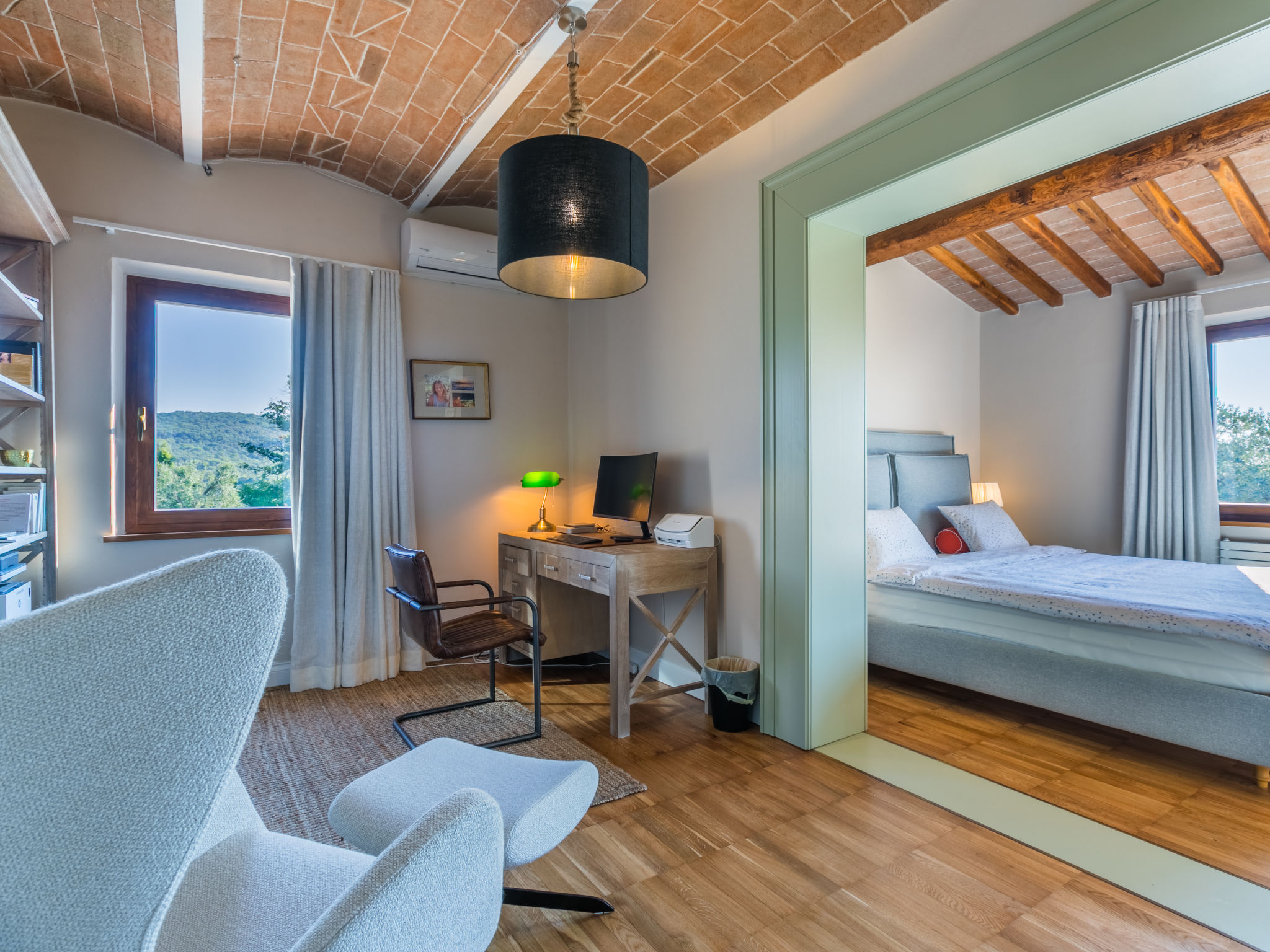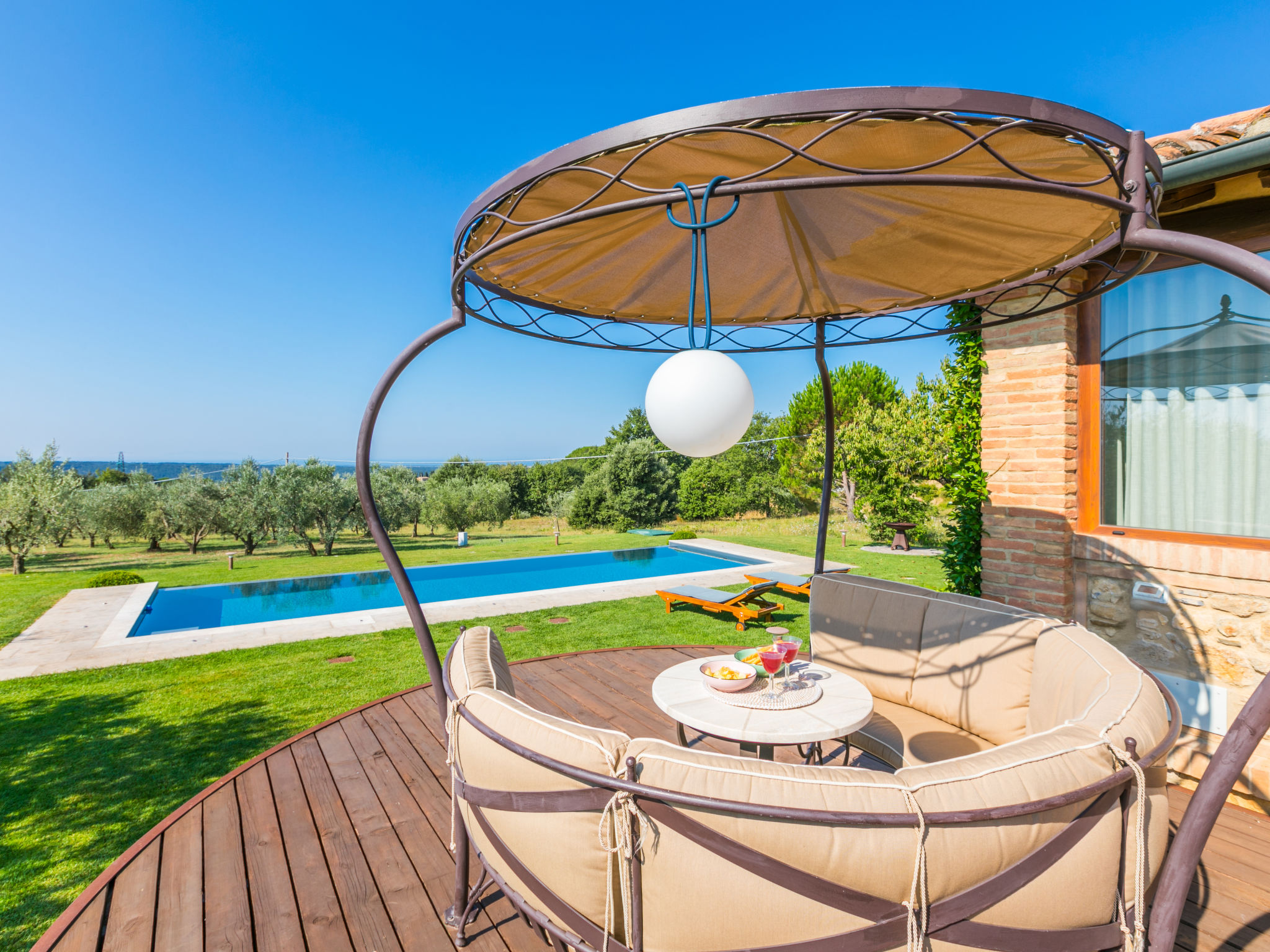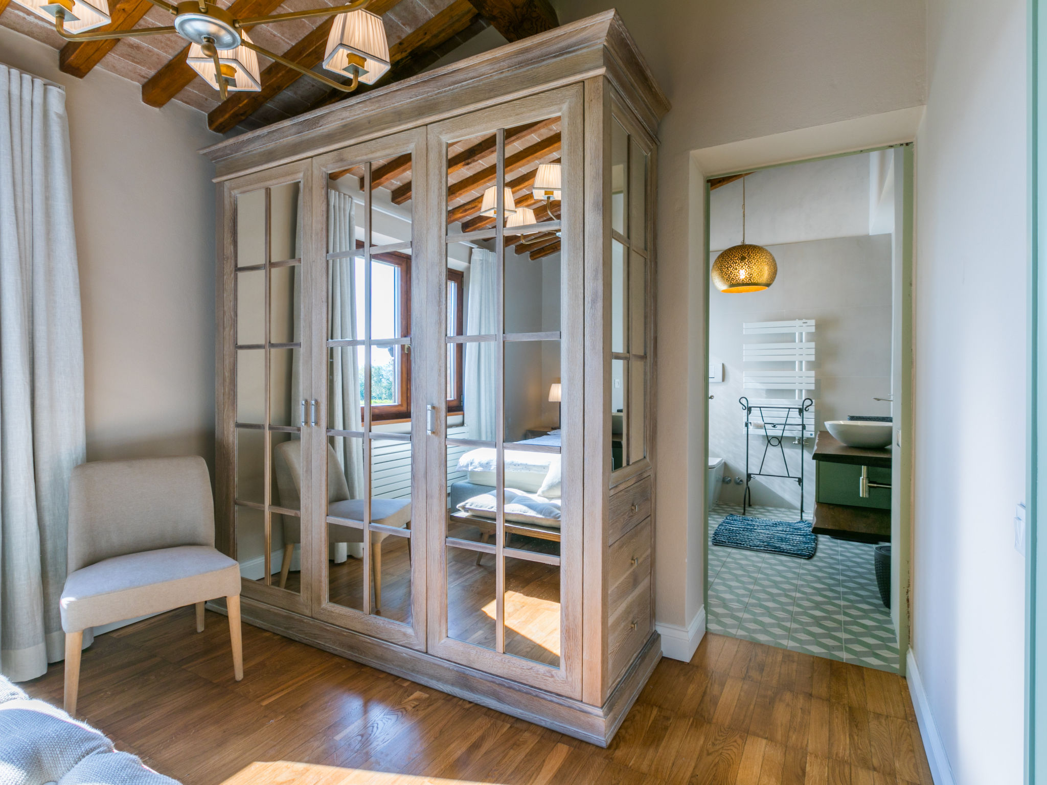 Rustico "Podere Boscherini", umgeben von Bäumen und Wiesen. Mietobjekt bestehend aus Haupt- und Nebengebäude, 3 km vom Zentrum von Riparbella, alleinstehende, erhöhte Lage, 14 km vom Meer, 14 km vom Strand. Zur Alleinbenutzung: gepflegter Garten (nicht eingezäunt), Liegewiese, Schwimmbad (12 x 6 m, 120 - 200 cm tief, saisonale Verfügbarkeit: 01.Apr. - 31.Okt.) mit Innentreppe. Aussendusche, Gartenmöbel, Grill. Wäschewechsel (zusätzlich extra). Handtuchwechsel (zusätzlich extra). Parkplatz beim Haus. Einkaufsgeschäft 4 km, Lebensmittelgeschäft 4 km, Restaurant 2 km, Bushaltestelle "La Melatina" 2 km, Thermalbad "Calidario" 45 km. Jacht-Hafen 16 km, Golfplatz (9 Loch) 20 km. Nahe gelegene Sehenswürdigkeiten: Bolgheri 25 km, Volterra 30 km, Pisa 60 km, Firenze 100 km. Der Besitzer akzeptiert keine Jugendgruppen.