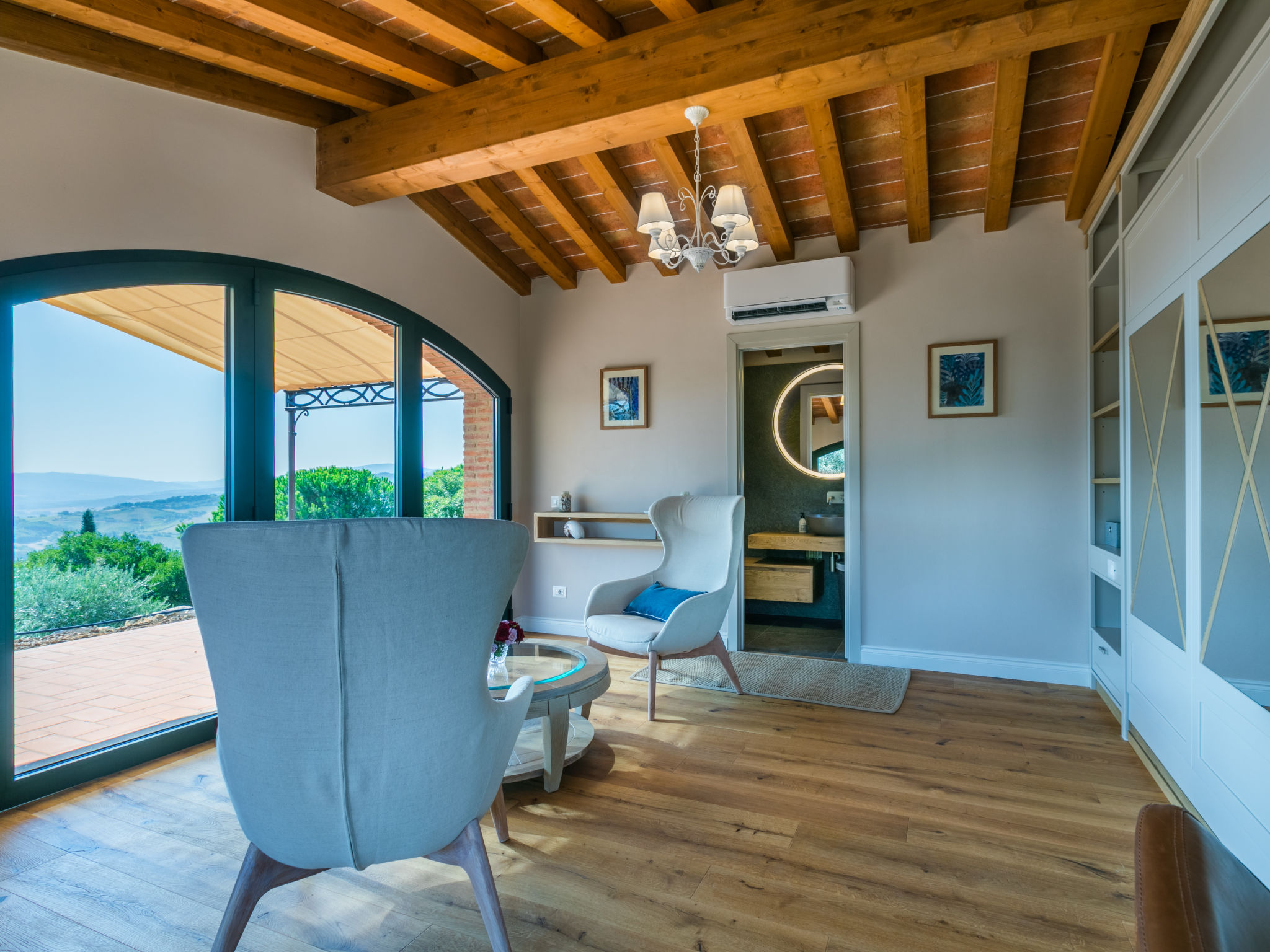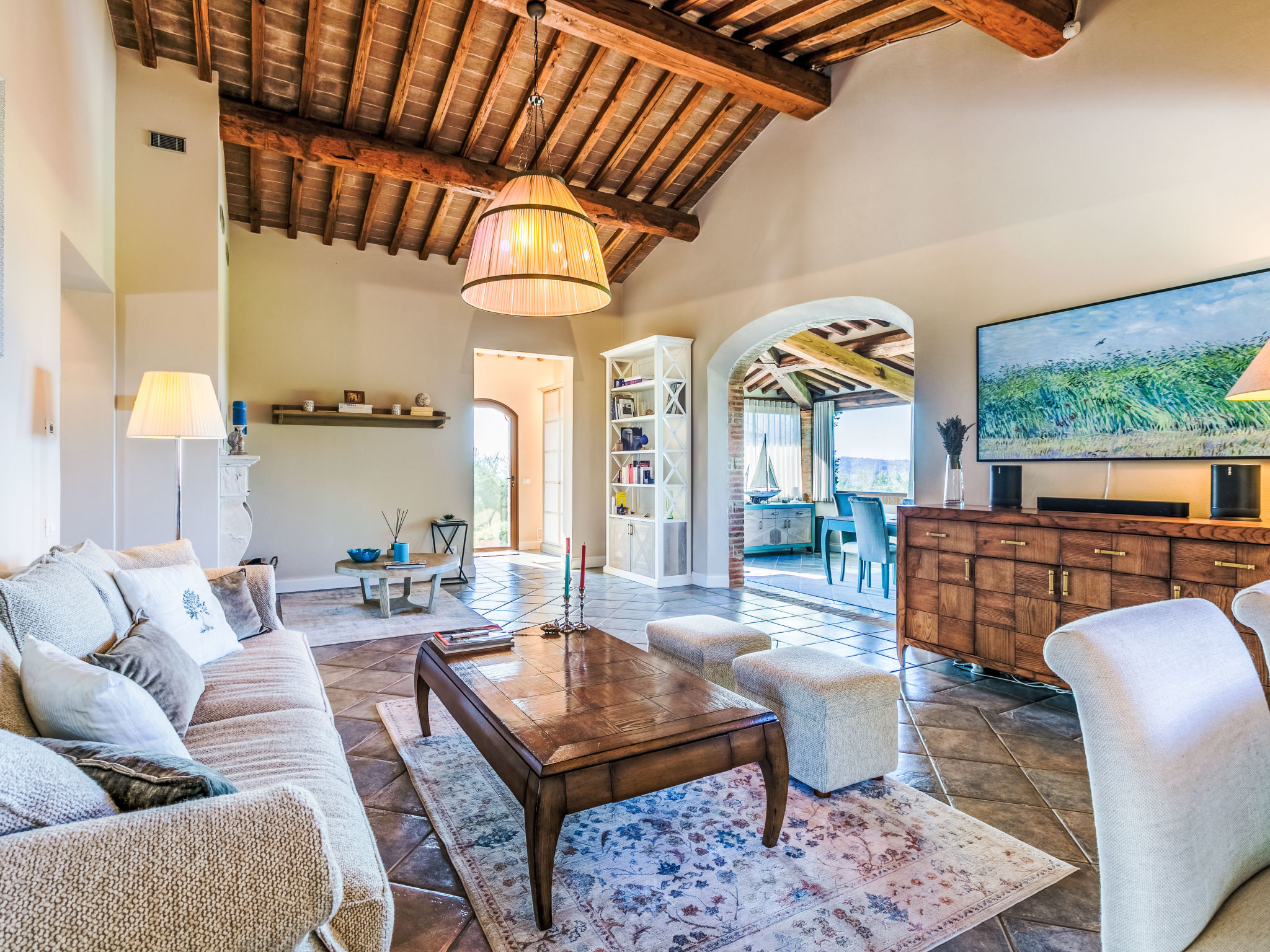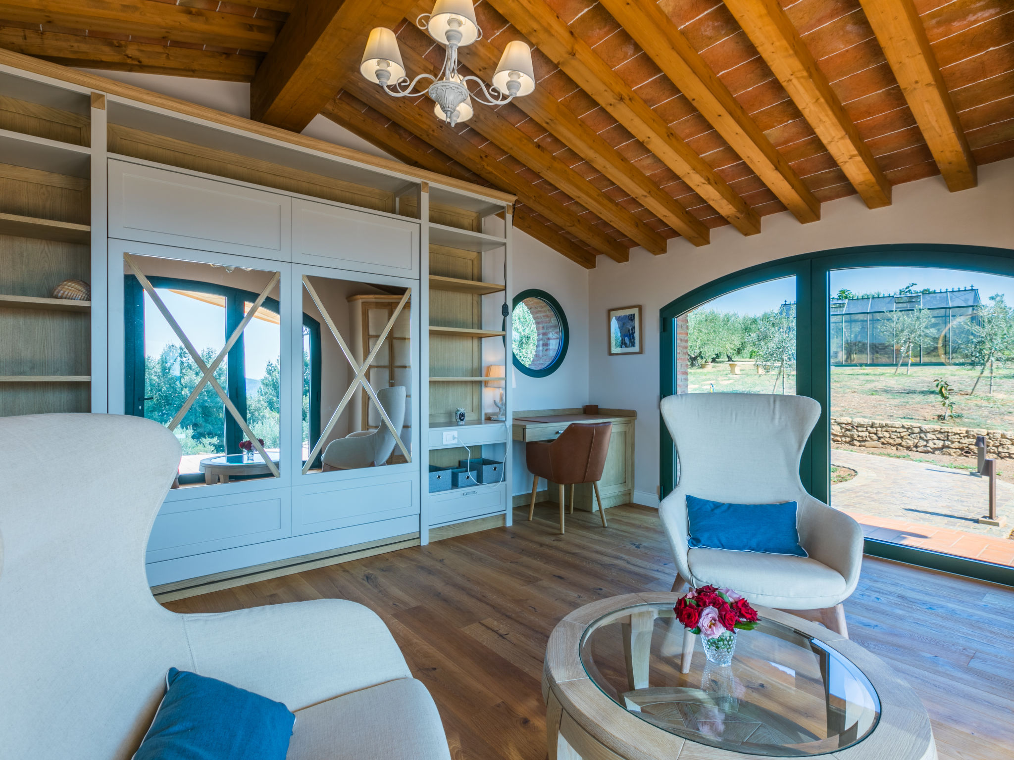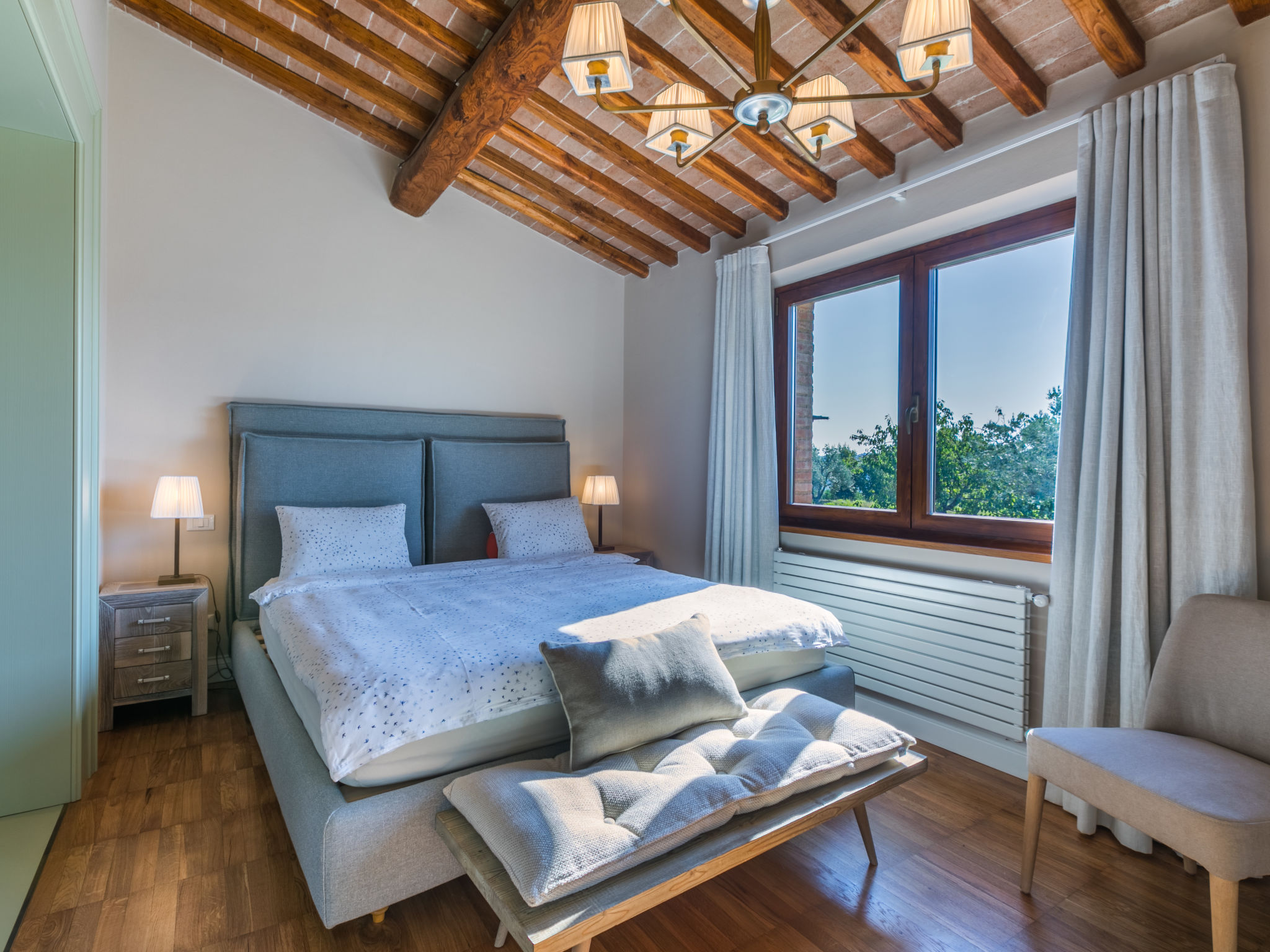 Rustico "Podere Boscherini", umgeben von Bäumen und Wiesen. Mietobjekt bestehend aus Haupt- und Nebengebäude, 3 km vom Zentrum von Riparbella, alleinstehende, erhöhte Lage, 14 km vom Meer, 14 km vom Strand. Zur Alleinbenutzung: gepflegter Garten (nicht eingezäunt), Liegewiese, Schwimmbad (12 x 6 m, 120 - 200 cm tief, saisonale Verfügbarkeit: 01.Apr. - 31.Okt.) mit Innentreppe. Aussendusche, Gartenmöbel, Grill. Wäschewechsel (zusätzlich extra). Handtuchwechsel (zusätzlich extra). Parkplatz beim Haus. Einkaufsgeschäft 4 km, Lebensmittelgeschäft 4 km, Restaurant 2 km, Bushaltestelle "La Melatina" 2 km, Thermalbad "Calidario" 45 km. Jacht-Hafen 16 km, Golfplatz (9 Loch) 20 km. Nahe gelegene Sehenswürdigkeiten: Bolgheri 25 km, Volterra 30 km, Pisa 60 km, Firenze 100 km. Der Besitzer akzeptiert keine Jugendgruppen.