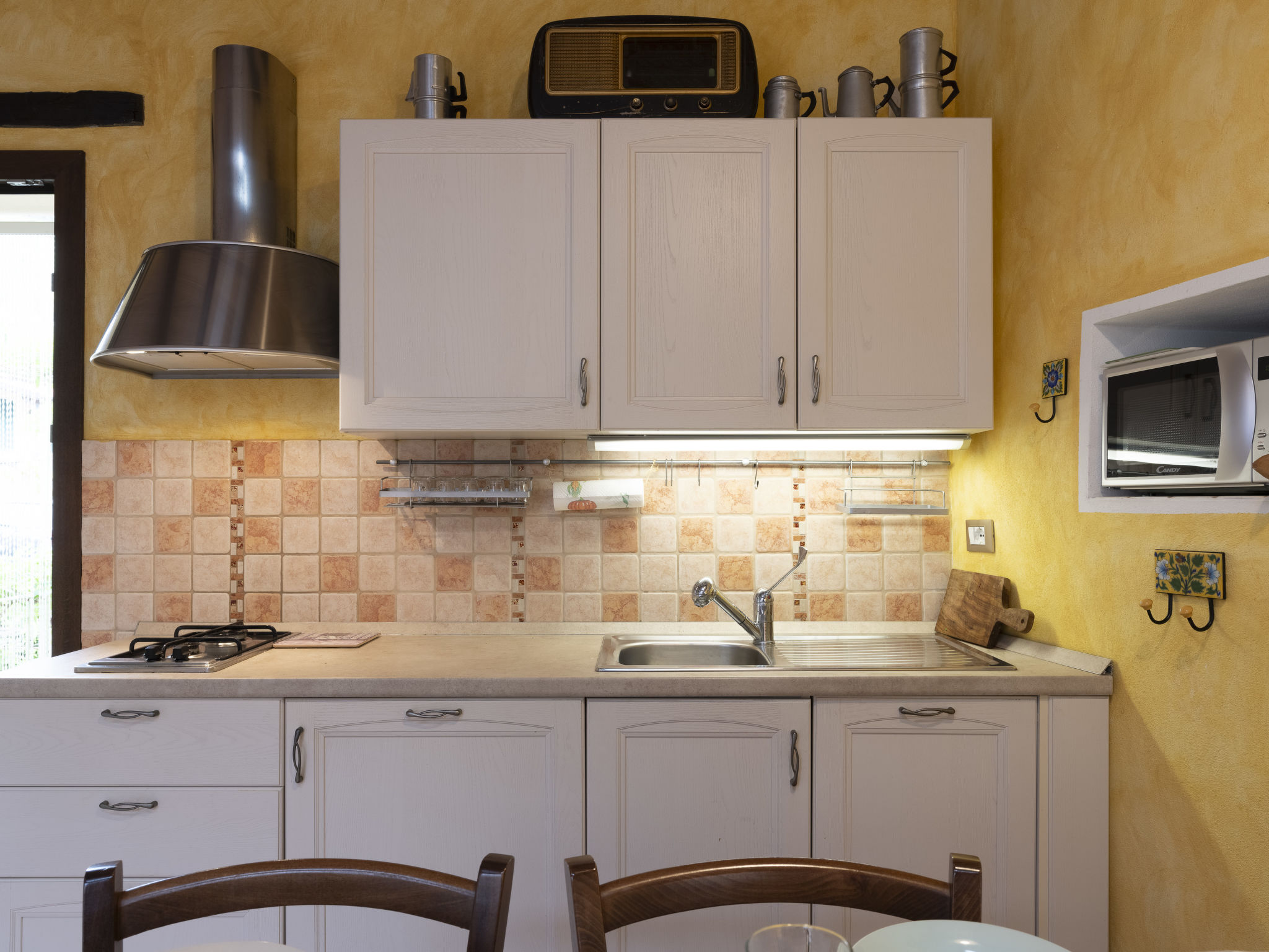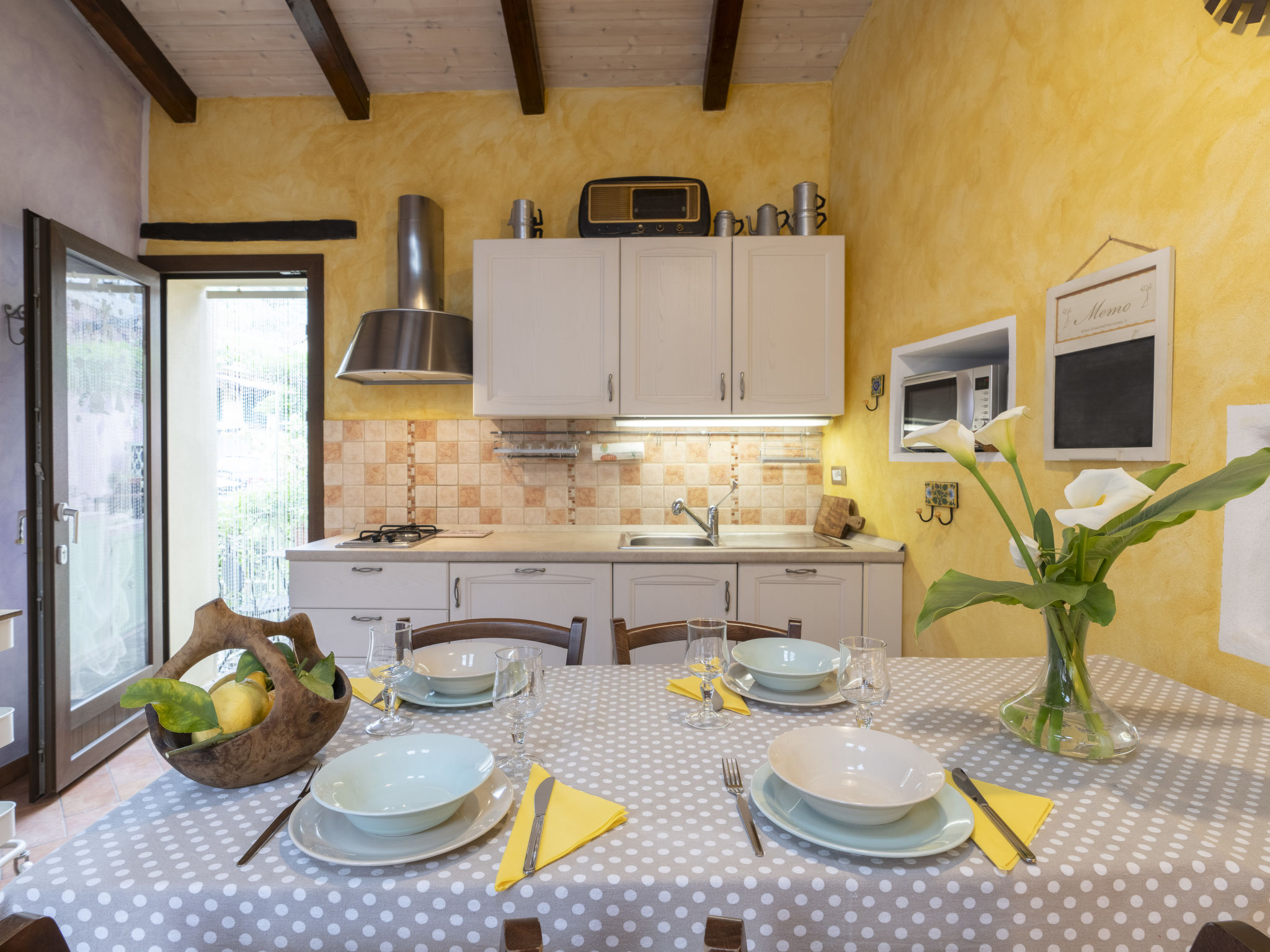 "La vecchia Stalla", 3-Zimmer-Doppelhaushälfte 70 m2, im Erdgeschoss. Komfortabel und gemütlich eingerichtet: Wohn-/Esszimmer mit 1 Diwanbett (140 cm, Länge 200 cm), TV. Ausgang zum Garten. Wohnküche (Geschirrspüler, 2 Flammen, Toaster, Wasserkocher, Mikrowelle). Ausgang zum Garten. Unteres Geschoss: (Wendeltreppe) 1 Doppelzimmer. Ausgang zum Balkon. Dusche/Bidet/WC. Keine Heizmöglichkeit. Natursteinboden. Balkon 6 m2. Terrassenmöbel. Sicht auf das Meer und die Ortschaft. Zur Verfügung: Waschmaschine, Haartrockner. Internet (WLAN, gratis). Bitte beachten: Maximal 1 Haustier/Hund erlaubt. Eigener Eingang. IT008025C2FQMHOT7W