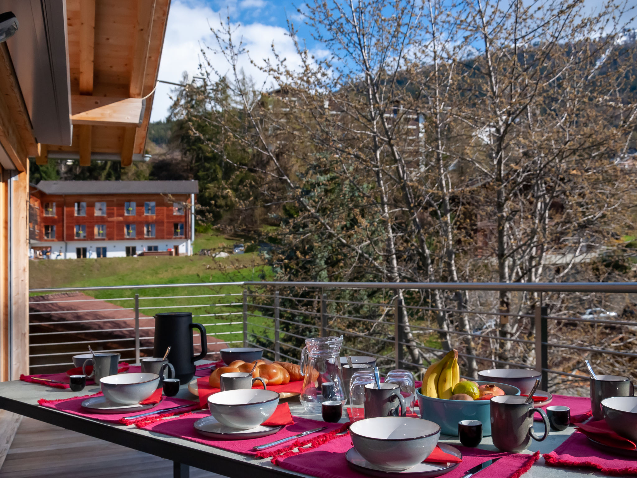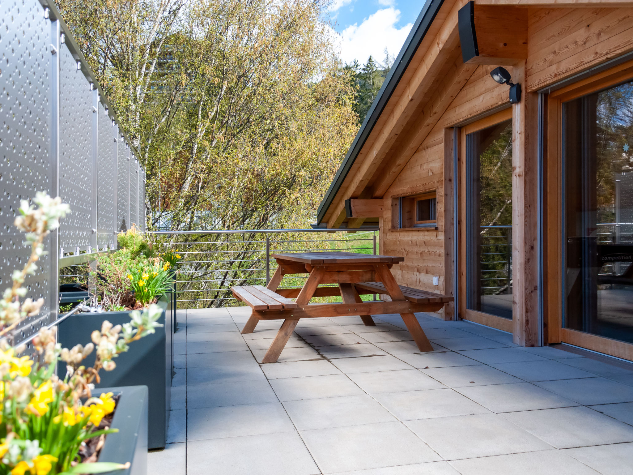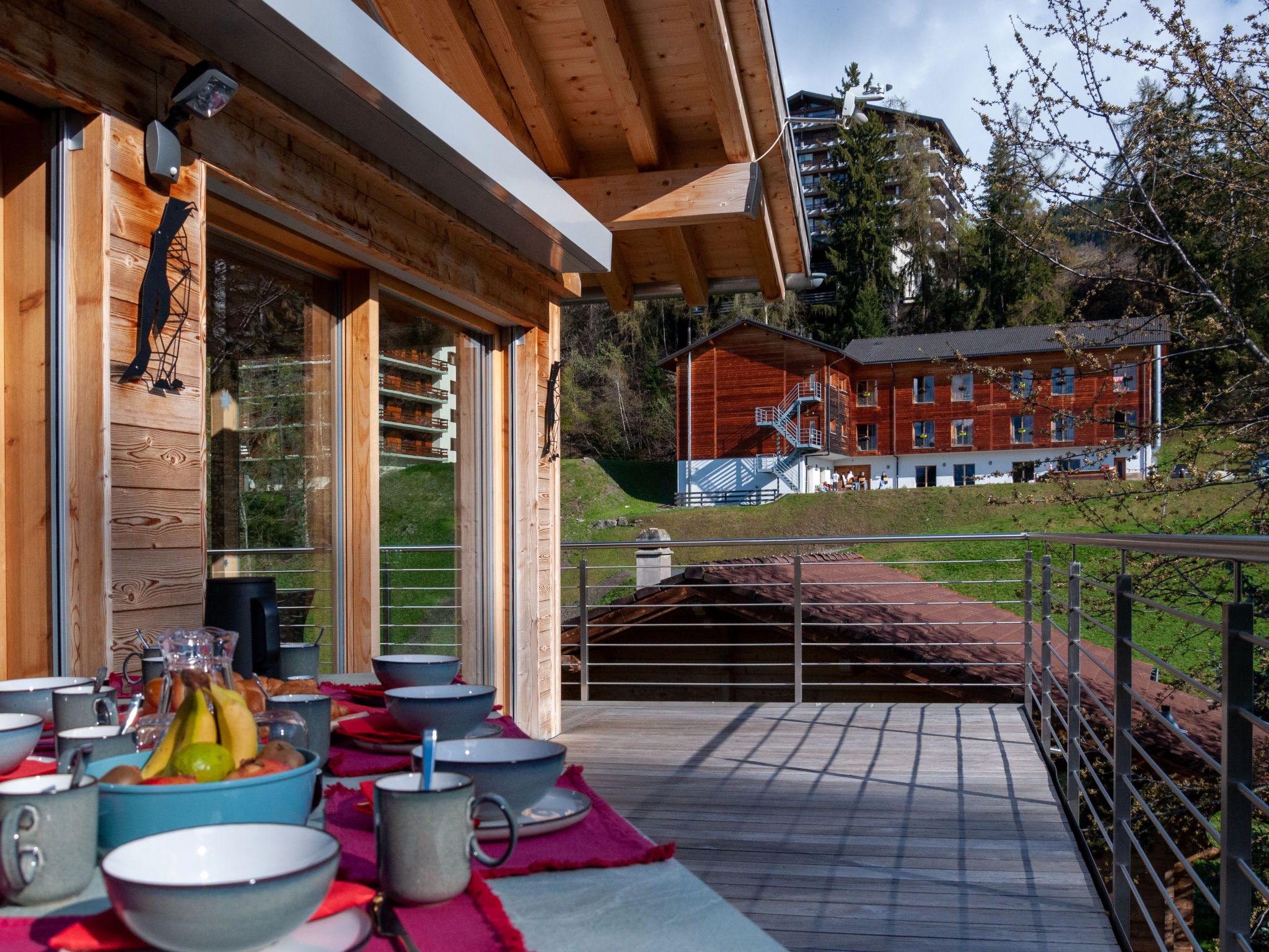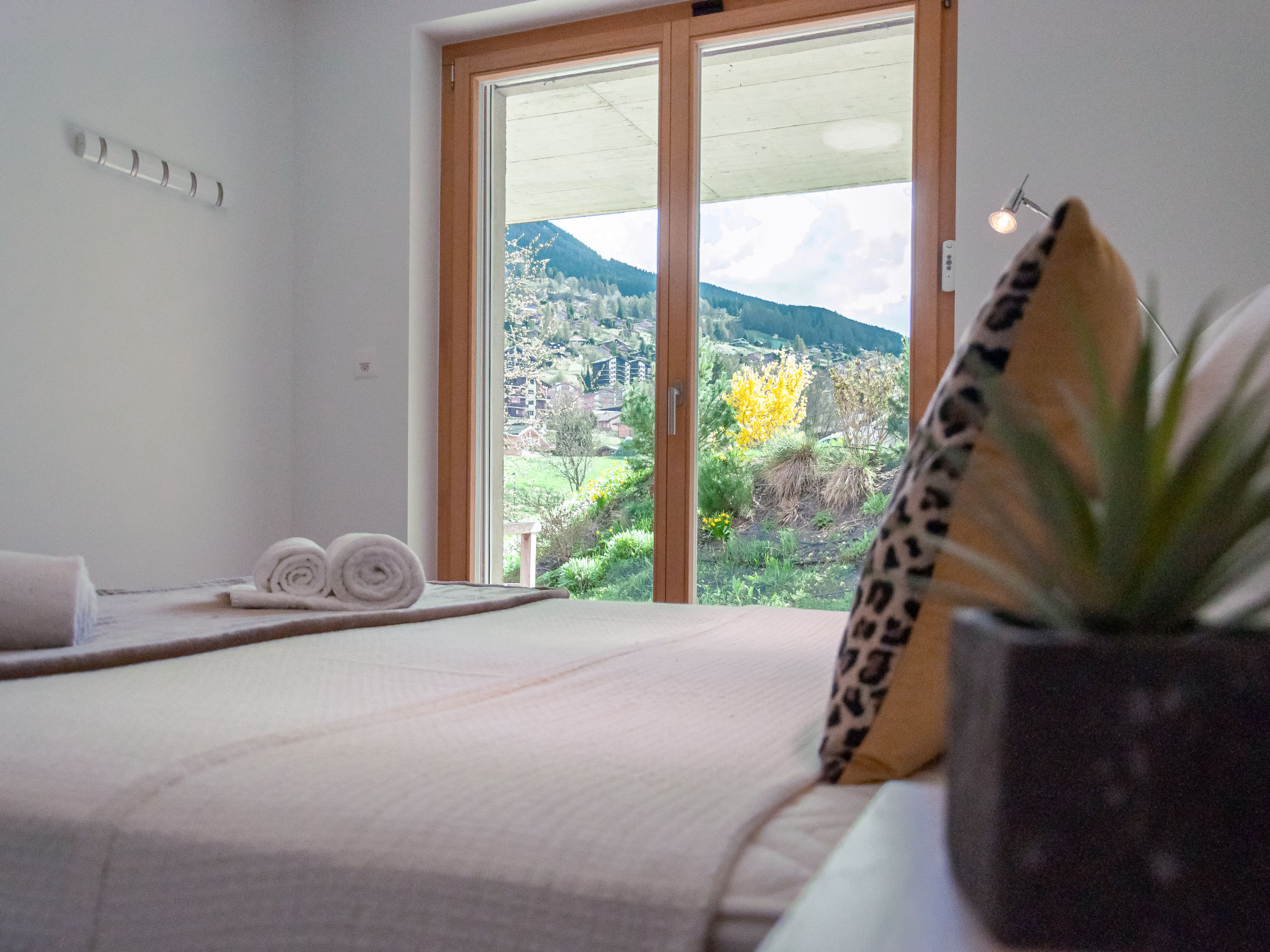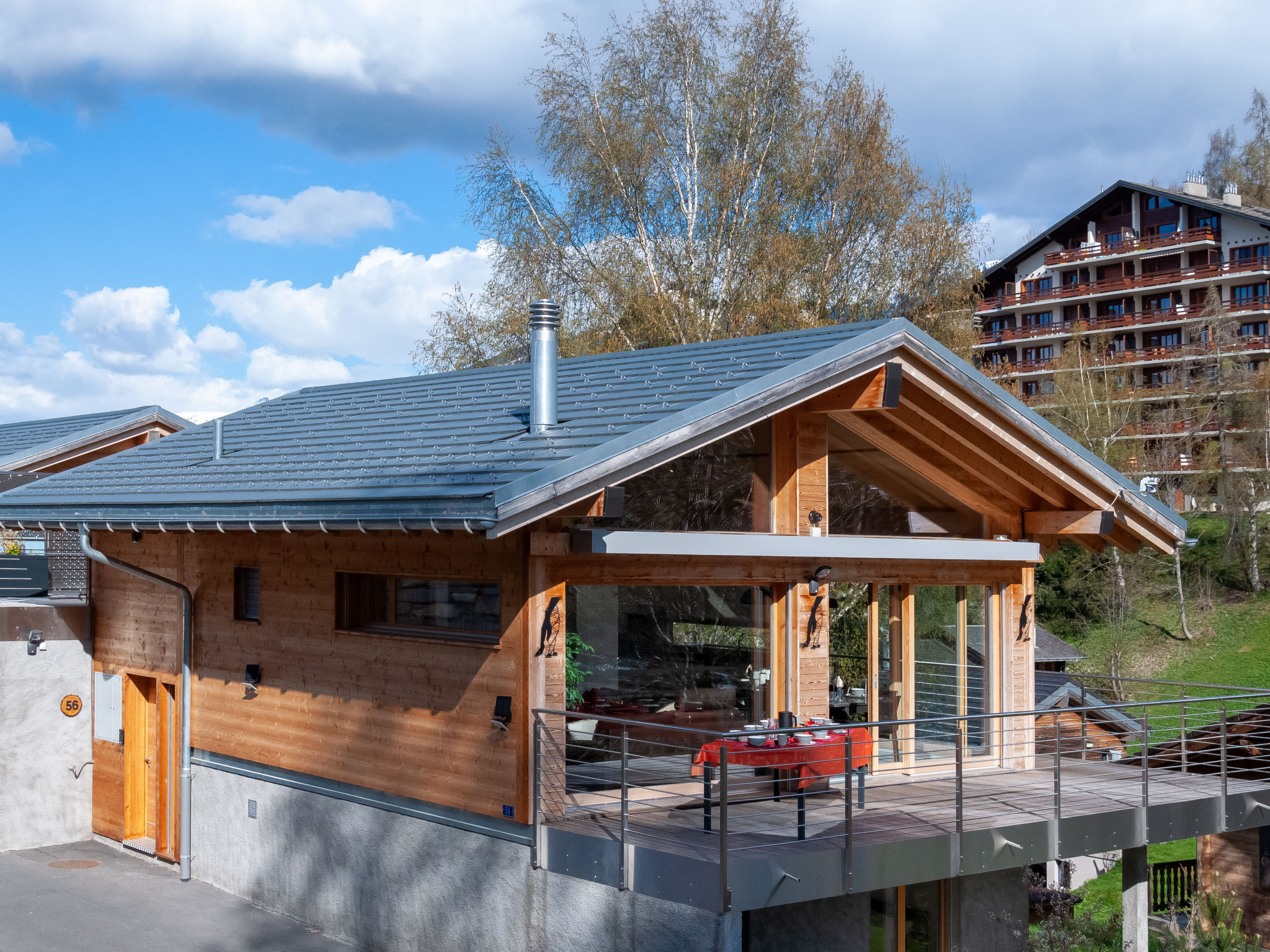 "Les penguins", 4-Zimmer-Chalet 116 m2 auf 3 Stockwerken. Hell, komfortabel und modern eingerichtet: grosses Wohn-/Esszimmer mit Kabel-TV. Ausgang zur Terrasse, Richtung Westen. Offene Küche (Backofen, Geschirrspüler, 4 Glaskeramikherd Platten, Mikrowelle, Tiefkühler, elektrische Kaffeemaschine, Kapseln für die Kaffeemaschine (nespresso) extra, Racletteofen, Fondue Set (Chinoise, Käse)). Dusche. Unteres Geschoss: Eingang. 2 Zimmer, jedes Zimmer mit 1 franz. Bett (160 cm, Länge 200 cm). Ausgang zur Terrasse. 1 Zimmer mit 1 franz. Bett (140 cm, Länge 200 cm). Bad/WC, sep. WC. Dachgeschoss: offene Galerie mit 1 Diwanbett (140 cm, Länge 200 cm). Ausgang zur Terrasse, Richtung Osten. Terrasse, Ostlage, 2 Terrassen, Westlage, Garten. Terrassenmöbel, Elektrogrill. Zur Verfügung: Waschmaschine, Kinderhochstuhl, Babybett, Haartrockner. Internet (Wireless LAN, gratis). Parkplatz (3 Autos), Garage. Bitte beachten: Nichtraucher-Unterkunft.