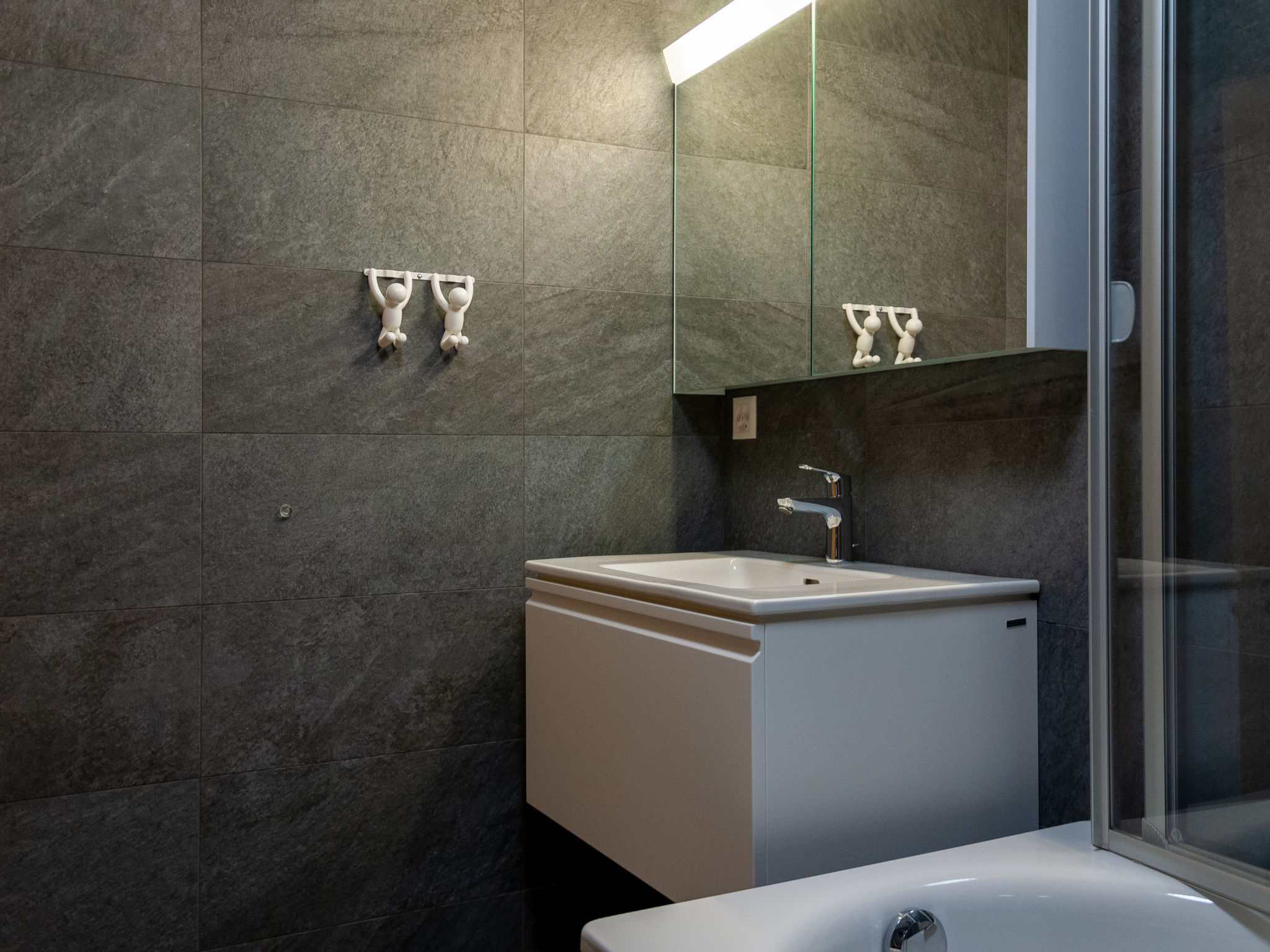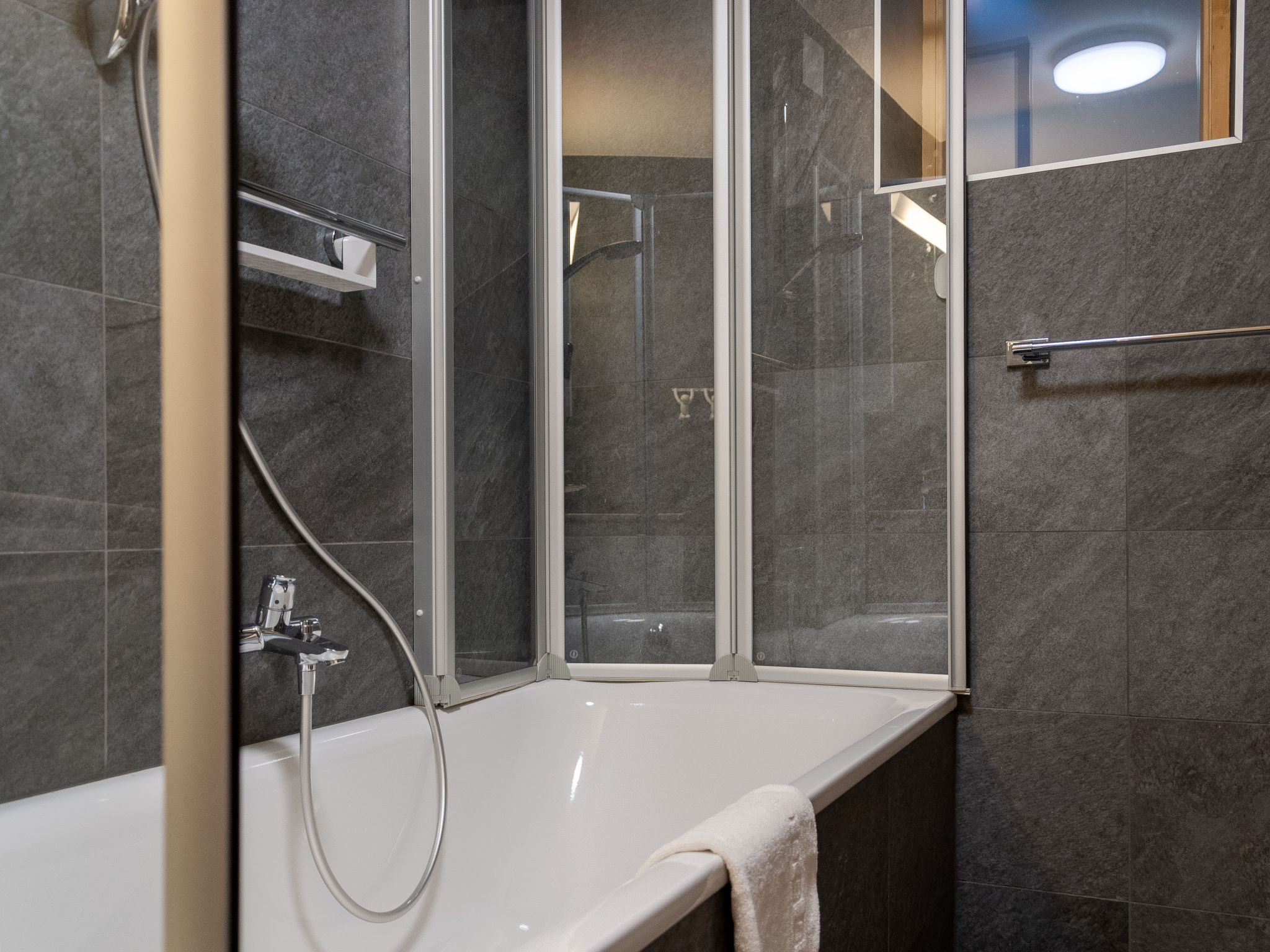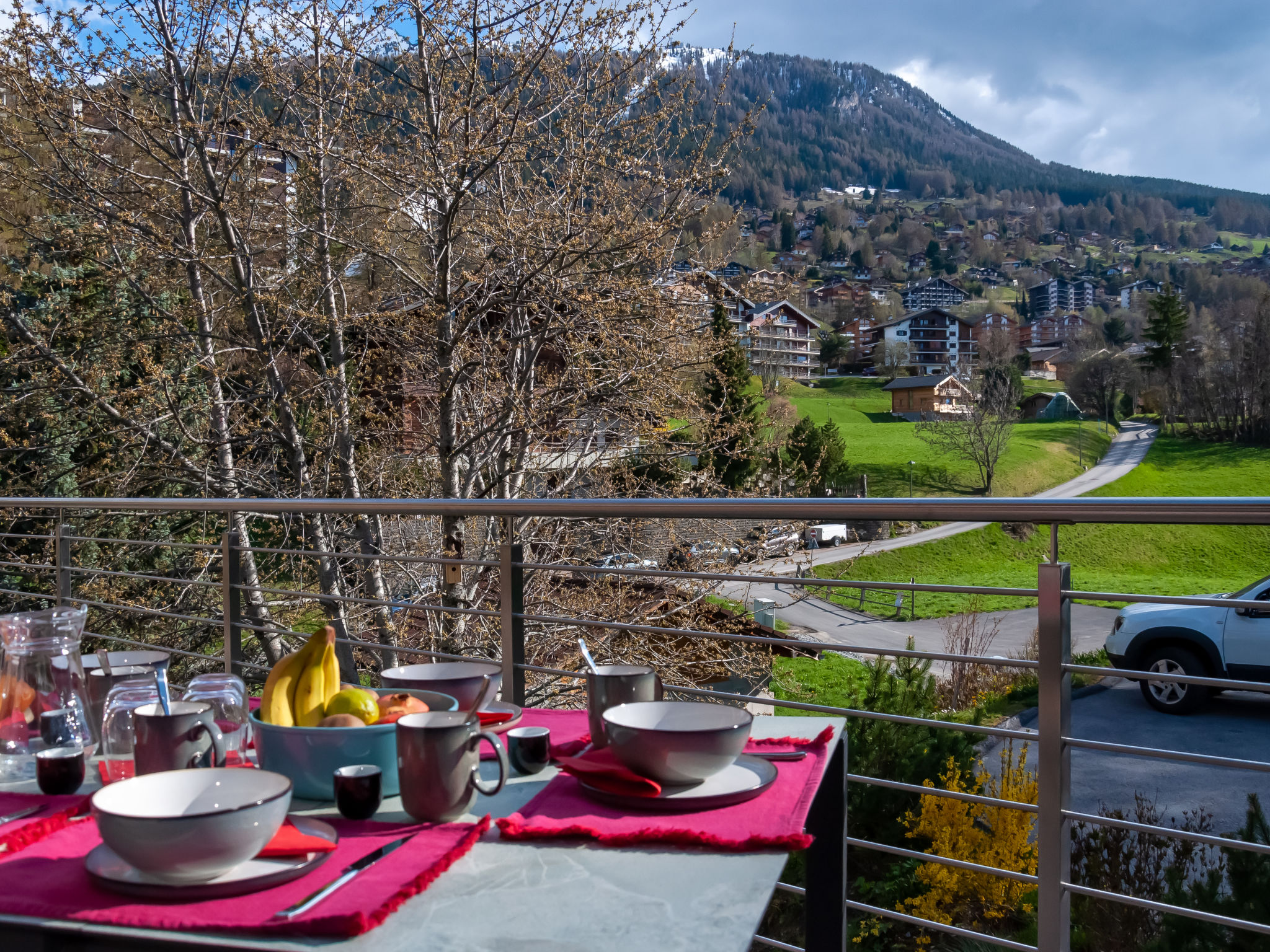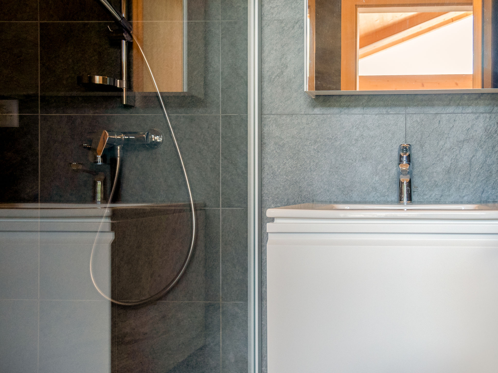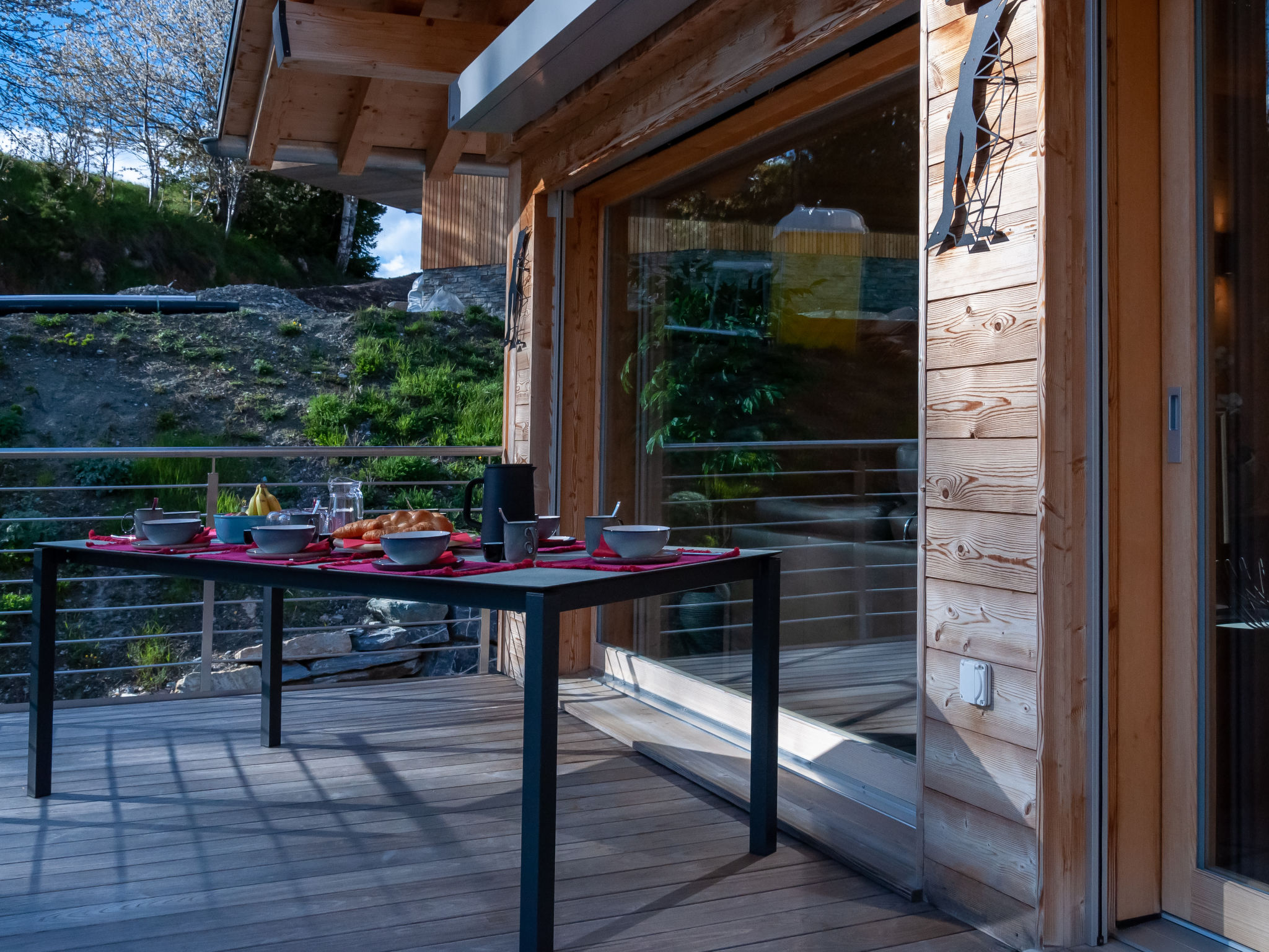 "Les penguins", 4-Zimmer-Chalet 116 m2 auf 3 Stockwerken. Hell, komfortabel und modern eingerichtet: grosses Wohn-/Esszimmer mit Kabel-TV. Ausgang zur Terrasse, Richtung Westen. Offene Küche (Backofen, Geschirrspüler, 4 Glaskeramikherd Platten, Mikrowelle, Tiefkühler, elektrische Kaffeemaschine, Kapseln für die Kaffeemaschine (nespresso) extra, Racletteofen, Fondue Set (Chinoise, Käse)). Dusche. Unteres Geschoss: Eingang. 2 Zimmer, jedes Zimmer mit 1 franz. Bett (160 cm, Länge 200 cm). Ausgang zur Terrasse. 1 Zimmer mit 1 franz. Bett (140 cm, Länge 200 cm). Bad/WC, sep. WC. Dachgeschoss: offene Galerie mit 1 Diwanbett (140 cm, Länge 200 cm). Ausgang zur Terrasse, Richtung Osten. Terrasse, Ostlage, 2 Terrassen, Westlage, Garten. Terrassenmöbel, Elektrogrill. Zur Verfügung: Waschmaschine, Kinderhochstuhl, Babybett, Haartrockner. Internet (Wireless LAN, gratis). Parkplatz (3 Autos), Garage. Bitte beachten: Nichtraucher-Unterkunft.