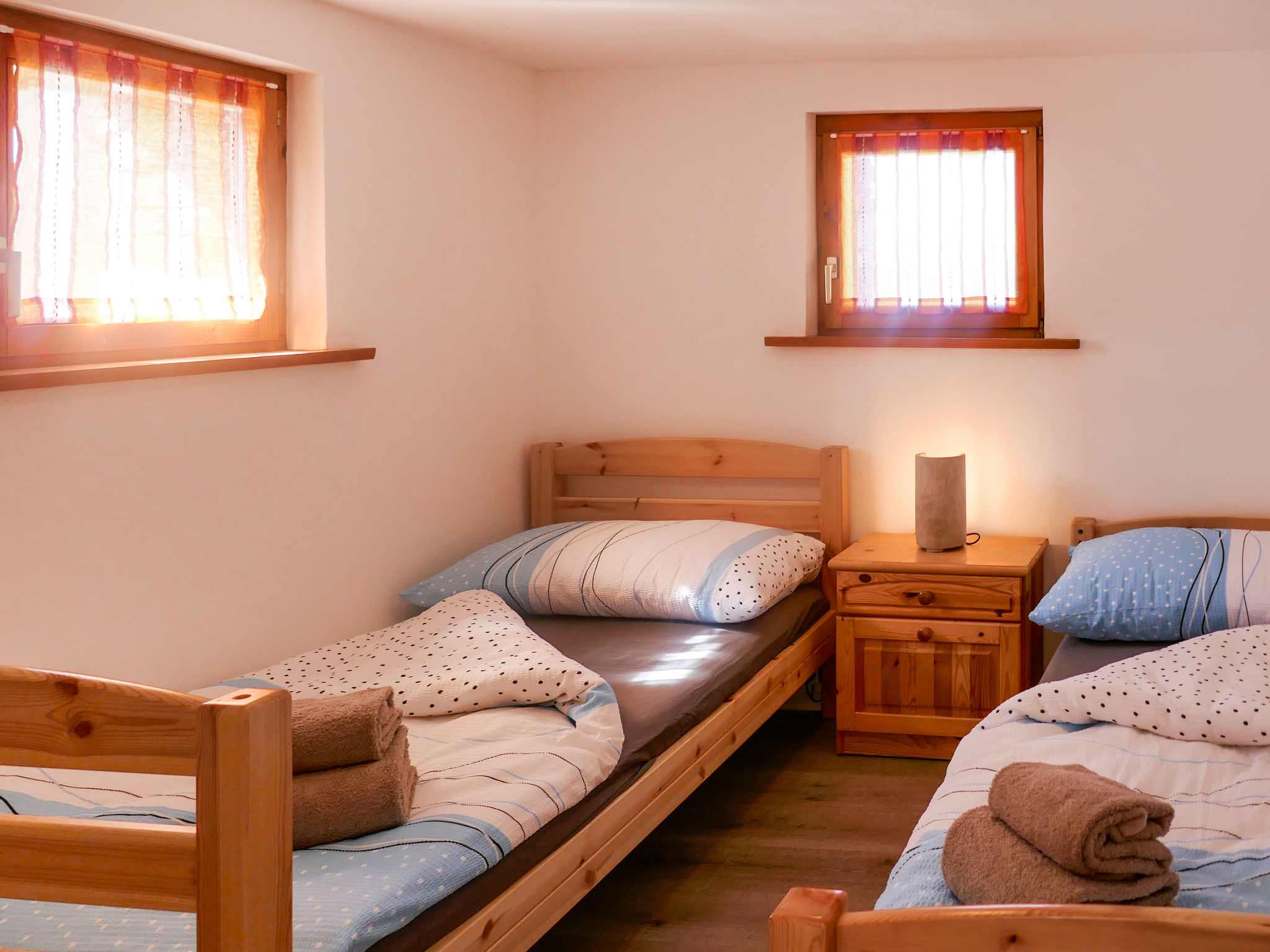 "Rustico Catcüc", 3-Zimmer-Haus 80 m2 auf 2 Stockwerken. Geräumig und hell, komfortabel und rustikal eingerichtet: grosse Wohnküche (4 Kochplatten, Fondue Set (Käse)) mit Esstisch, offenem Kamin, Radio und Holzofen. Ausgang zur Terrasse. Unteres Geschoss: 1 grosses Doppelzimmer mit 1 Doppelbett (1 x 160 cm, Länge 200 cm), Holzofen. Ausgang zum Garten. 1 kleines Zimmer mit 2 Betten (90 cm, Länge 200 cm). Dusche/WC. Holzheizung. Grosse Terrasse. Terrassenmöbel (2). Herrliche Panoramasicht auf die Berge und das Tal. Bitte beachten: nicht geeignet für Kinder unter 8 Jahren. Nichtraucher-Haus. Maximal 1 Haustier/Hund erlaubt. Feuerlöscher. Keine interne Verbindung zwischen den Etagen. Bergschuhe und Rucksack empfohlen.