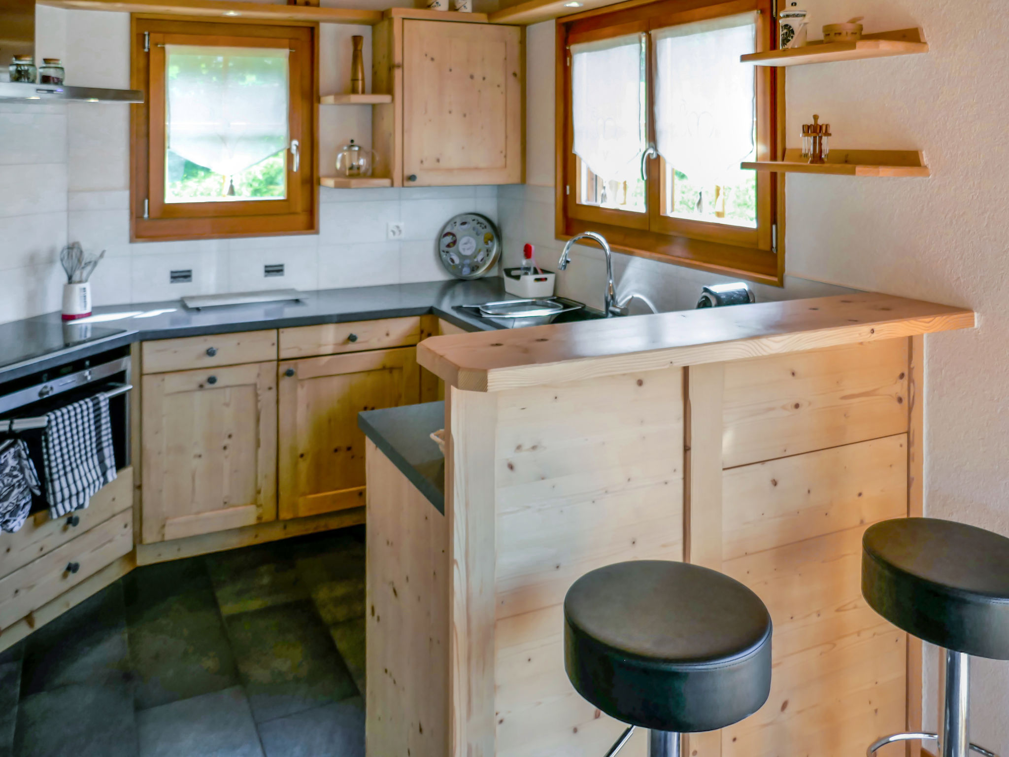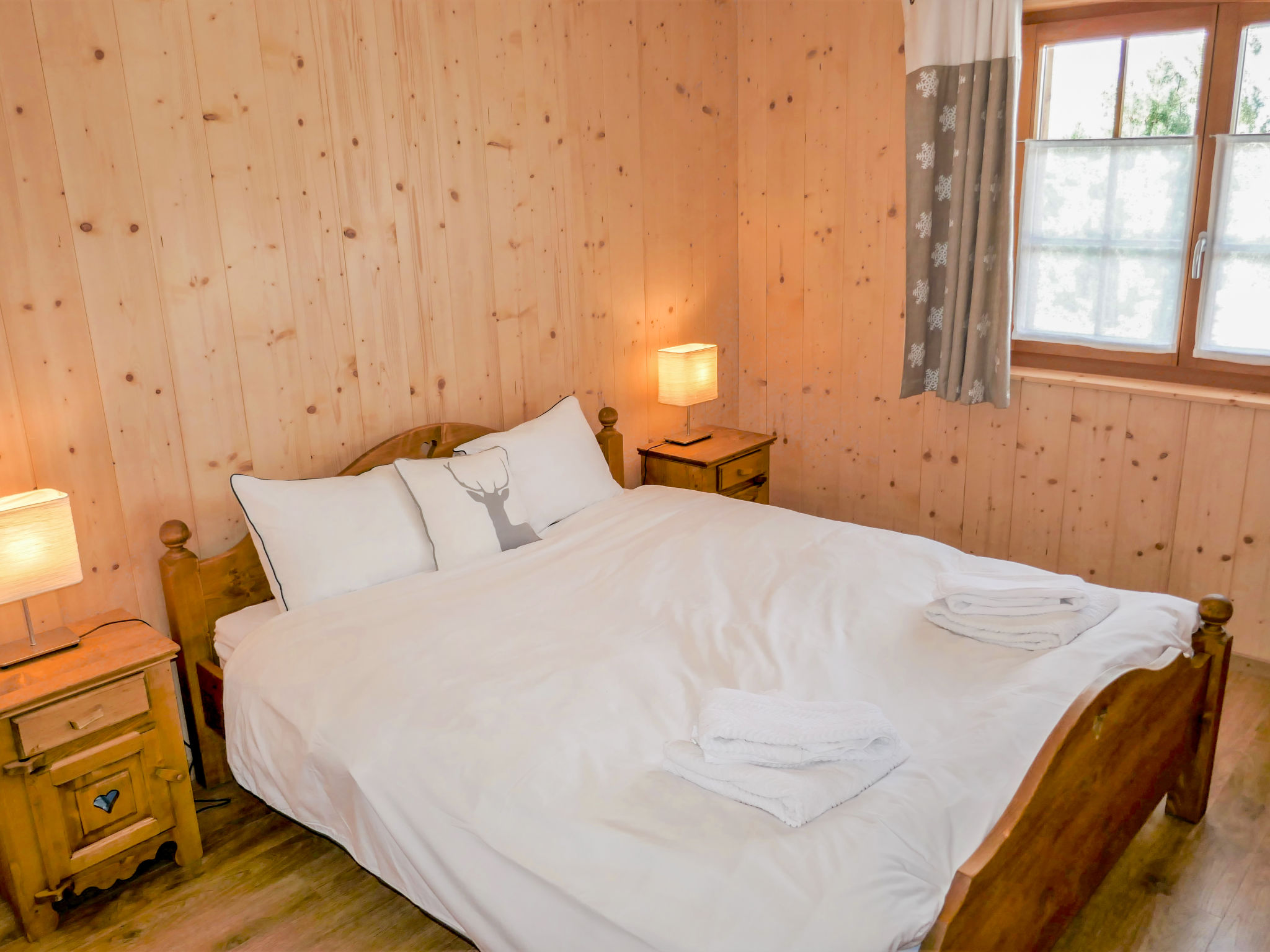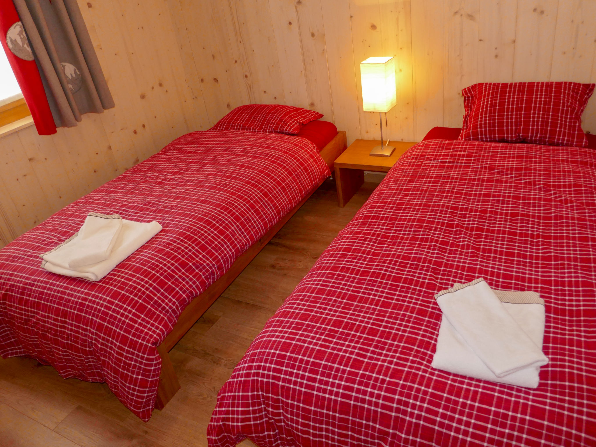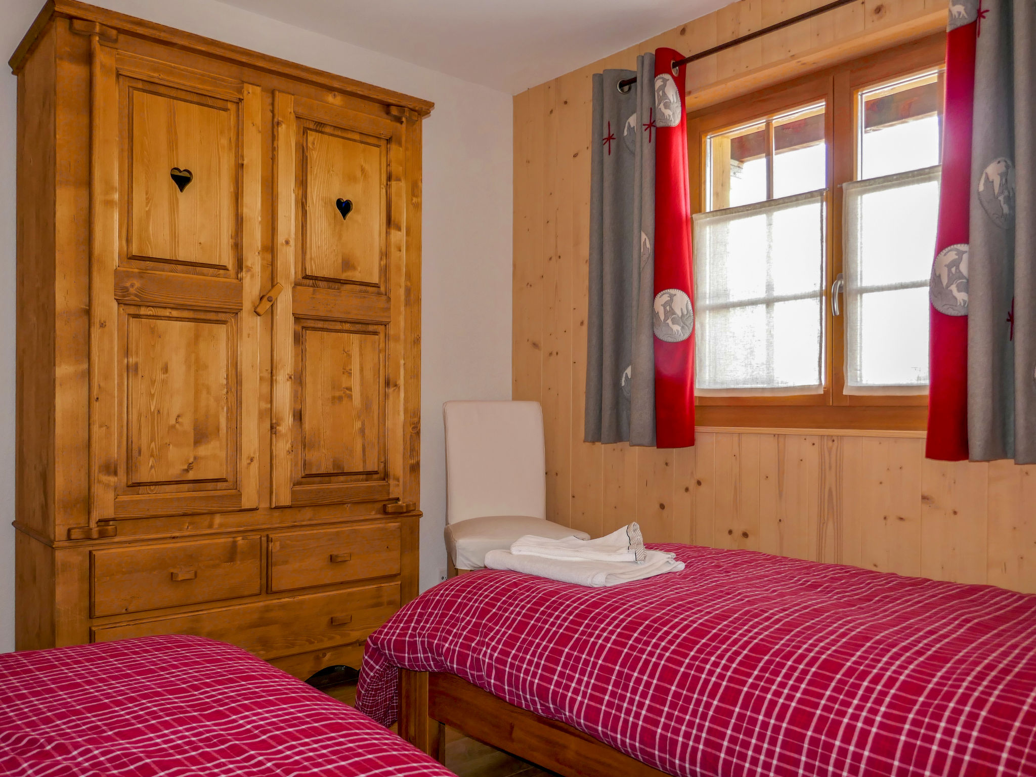 "Le Muveran V8", 5-Zimmer-Chalet 184 m2 auf 3 Stockwerken. Geräumig und hell, schön und geschmackvoll eingerichtet: Eingang. Wohn-/Esszimmer mit offenem Kamin, Kabel-TV und Radio. Ausgang zum Balkon, zur Terrasse, Richtung Norden und Richtung Westen. Offene Küche (Backofen, Geschirrspüler, 4 Glaskeramikherd Platten, Mikrowelle, elektrische Kaffeemaschine, Kapseln für die Kaffeemaschine (nespresso) extra, Racletteofen, Fondue Set (Chinoise, Käse)). Sep. WC. Unteres Geschoss: Eingang. 1 Zimmer mit 1 franz. Bett (160 cm, Länge 200 cm). 1 Zimmer mit 2 Betten (90 cm, Länge 200 cm). Dusche/WC. Obergeschoss: 1 Zimmer mit 1 franz. Bett (160 cm, Länge 200 cm). Ausgang zum Balkon, Richtung Norden. 1 Zimmer mit 2 Betten (90 cm, Länge 200 cm). Ausgang zum Balkon, Richtung Norden. Bad/Dusche/WC. Balkon, Nordlage Terrasse 27 m2, Westlage, Garten, Südlage. Terrassenmöbel, Gartengrill, Liegestühle (4). Sehr schöne Sicht auf die Berge. Zur Verfügung: Waschmaschine, Wäschetrockner, Kinderhochstuhl, Babybett, Haartrockner. Internet (Wireless LAN, gratis). Parkplatz (3 Autos). Bitte beachten: Nichtraucher-Unterkunft. 1 Haustier/Hund erlaubt.