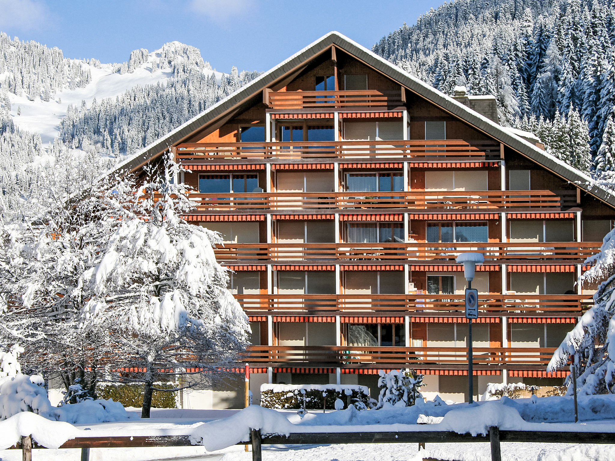 Rochegrise: Residenz "Grenat", auf 5 Stockwerken. Oberhalb von Villars, sonnige Lage, 200 m vom Skigebiet, an einer Strasse, im Grünen, Richtung Süden. Zur Mitbenutzung: Garten mit Rasen und Pflanzen. Im Hause: Fahrstuhl. Gemeinschaftsgarage, öffentliche Parkplätze. Maße: Höhe 200 cm Breite 430 cm. Einkaufsgeschäft 1 km, Lebensmittelgeschäft 700 m, Restaurant 600 m, Bäckerei 800 m, Zentrum zu Fuss in 10 Minuten erreichbar, Bushaltestelle 1.4 km, Bahnstation "Roches Grises" 90 m, Hallenbad 1.3 km, Thermalbad "Lavey-les-Bains" 19 km. Sporthafen 25 km, Golfplatz (18 Loch) 7 km, Tennishalle, Sportzentrum 100 m, Bergbahn 90 m, Skilift 400 m, Gondelbahn 2 km, Skibushaltestelle 1.4 km, Skischule 1.4 km, Kinderskischule 100 m, Eisfeld 1.3 km, Kinderspielplatz 1.5 km. Der gratis Skibus fährt zum Skigebiet Villars.