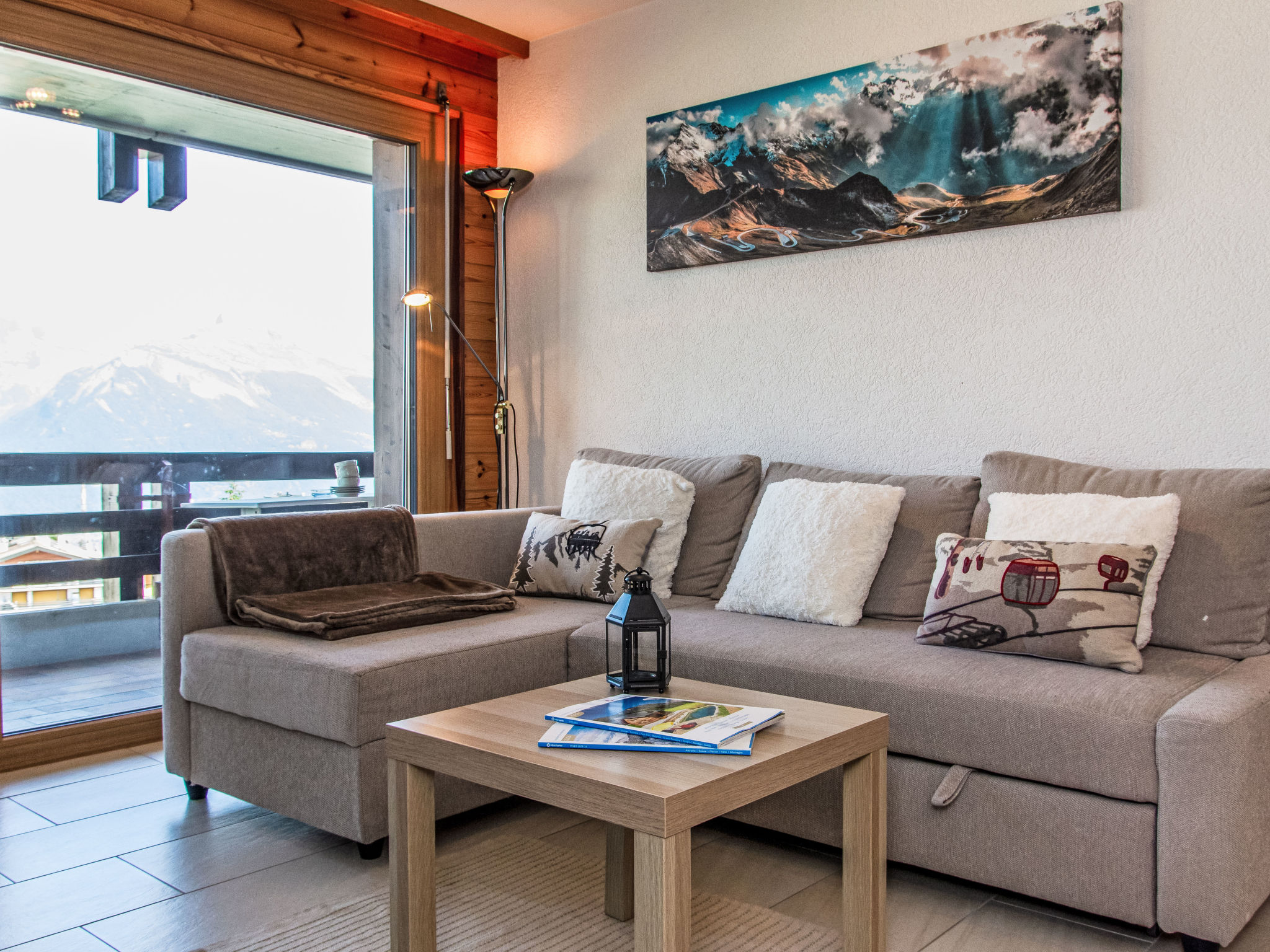 Residenz "Les Hauts de Nendaz". Im Ort, erhöhte Lage, direkt am Skigebiet. Im Hause: Fahrstuhl, Skiraum, Waschmaschine, Wäschetrockner (zur Mitbenutzung, extra). Steile Zufahrt bis zum Haus. Im Winter bitte Schneeketten mitbringen. Einkaufsgeschäft, Restaurant 100 m. Golfplatz 18 km, Tennis 500 m, Skisportanlagen 100 m, Eisfeld 500 m. Bitte beachten: In diesem Haus sind weitere Ferienwohnungen mietbar.