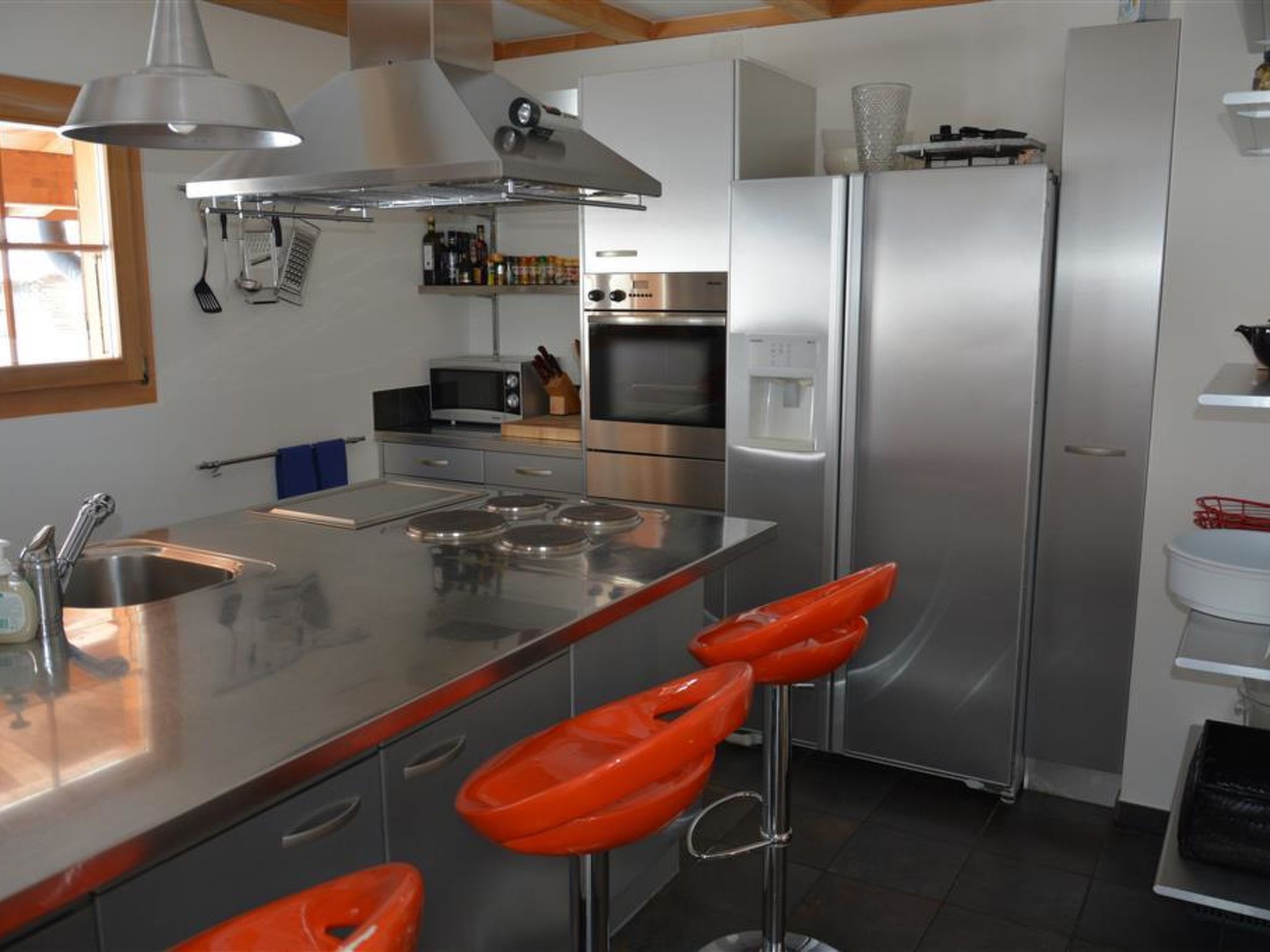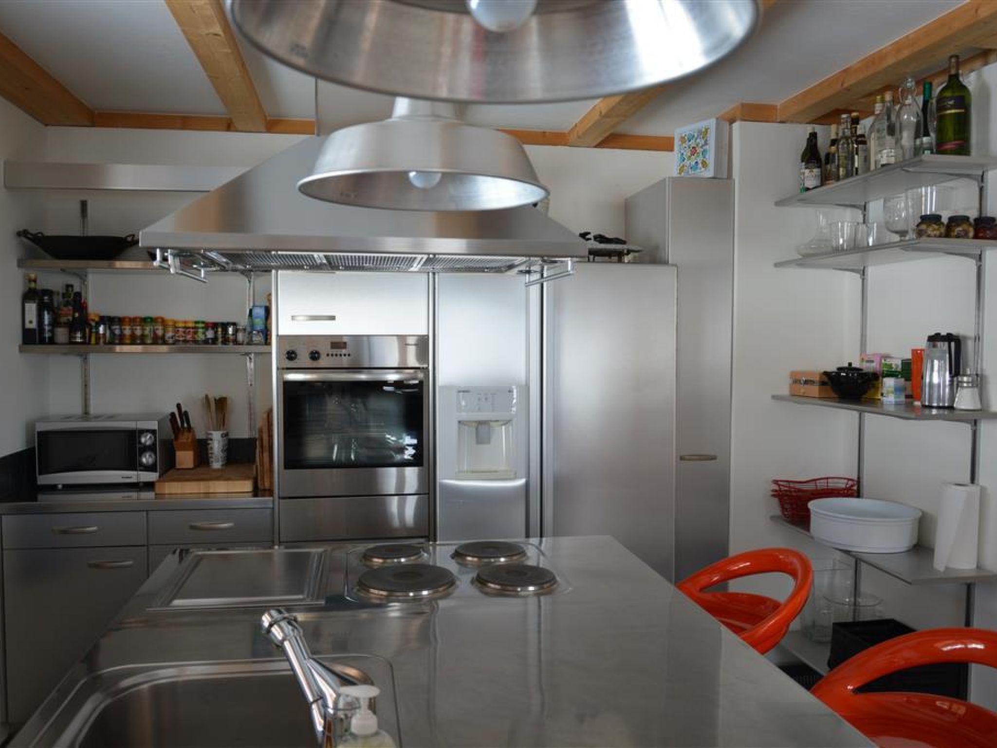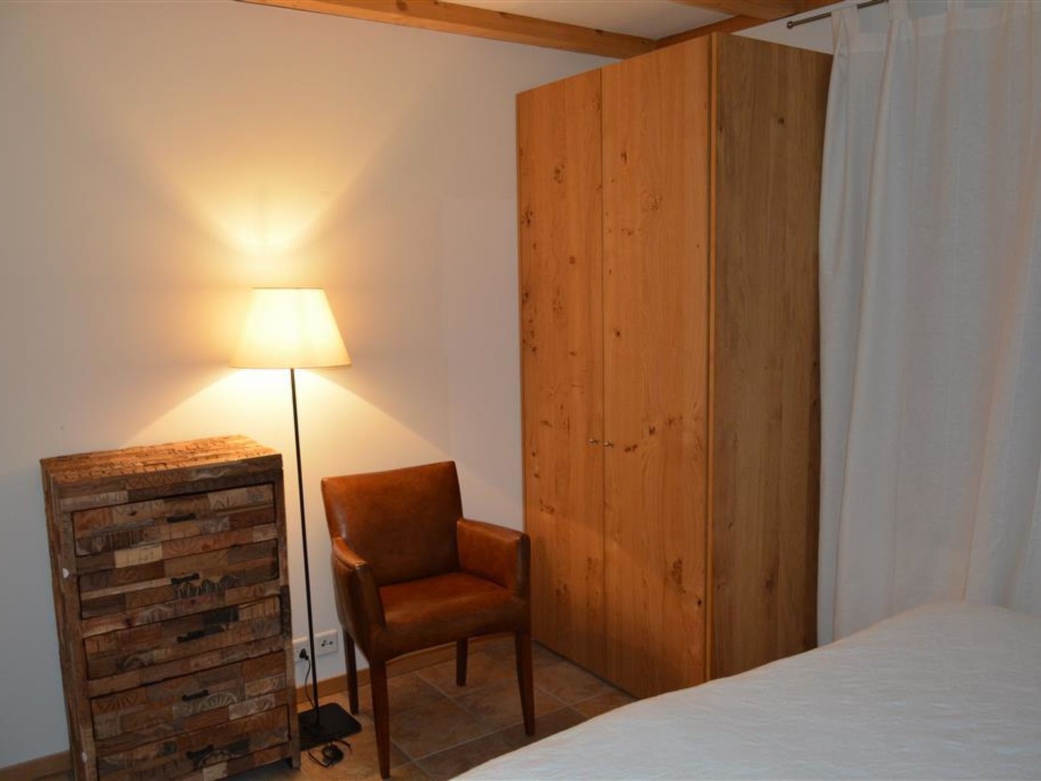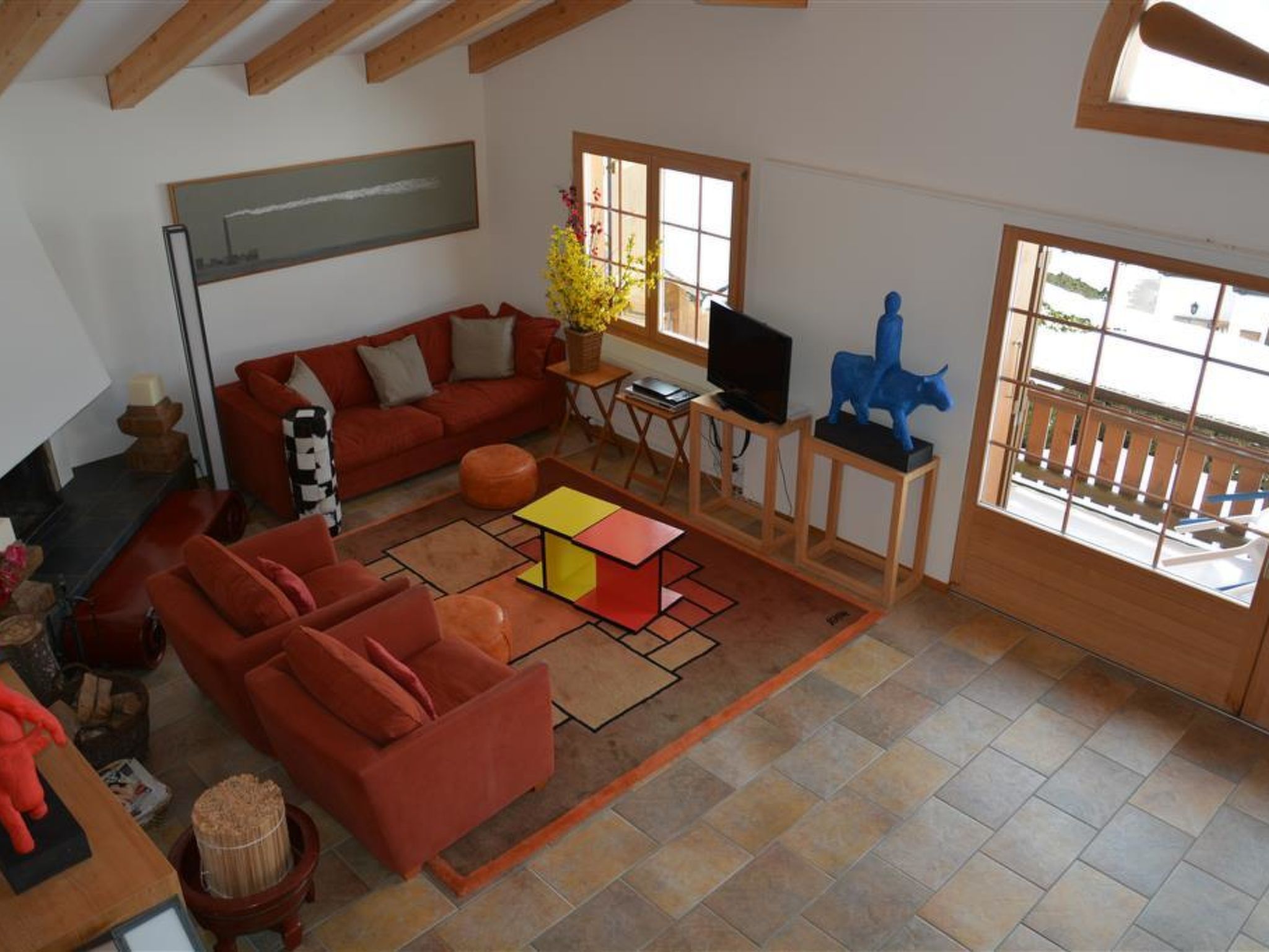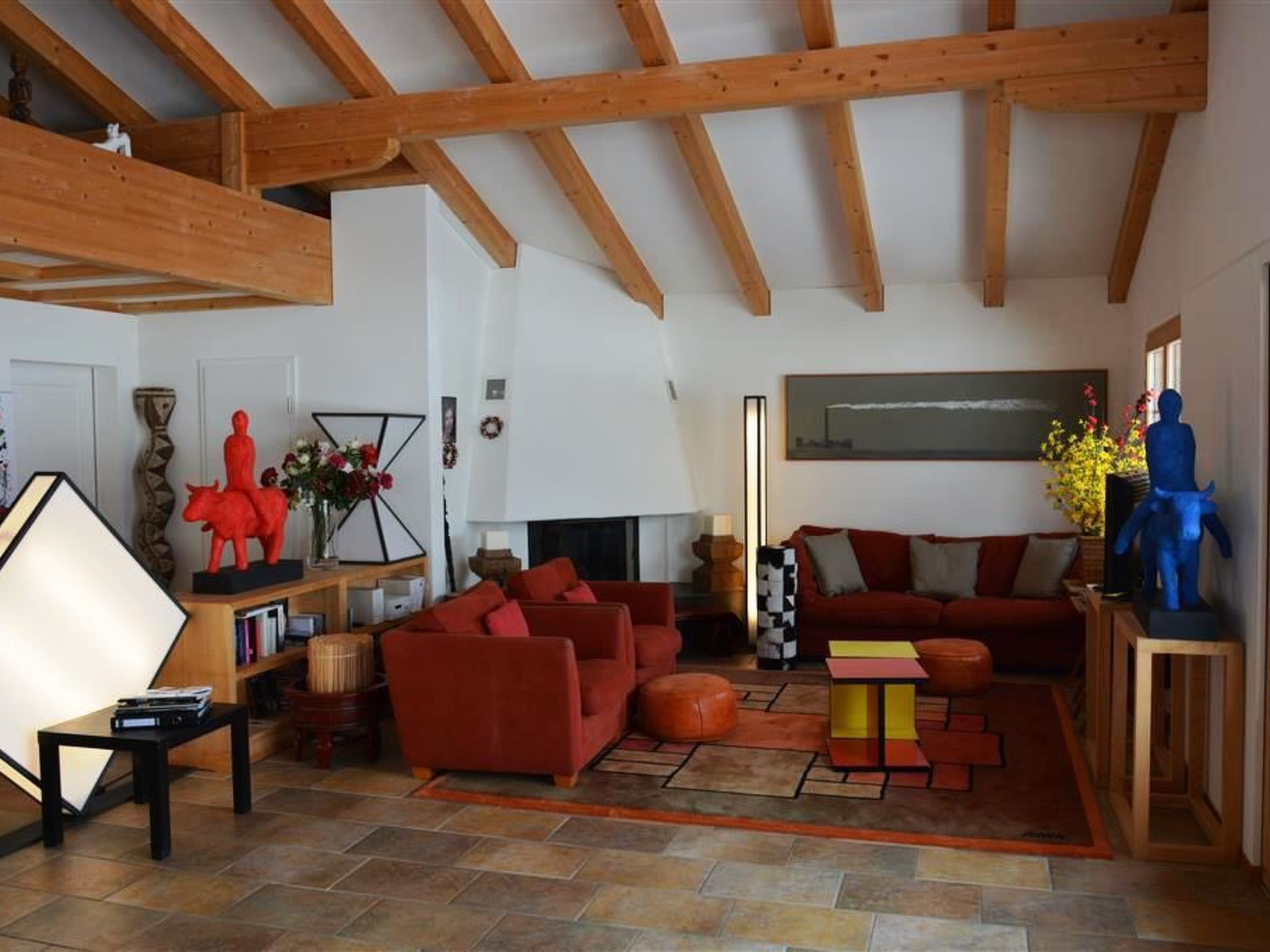 Mit Bildern, Skulpturen und weiteren Werken des Künstlers Scapa dekorierte grosse, helle Künstlerwohnung. Das Wohnzimmer ist mit Kamin, Sofa, Salontisch, TV, DVD-Player, Radio/CD-Player, WiFi sowie einem Esstisch für 6 Personen ausgestattet. Separate Küche (u. a. ausgestattet mit Kaffemaschine, Fondue-, Raclette-Set und vielen weiteren Küchenutensilien) mit Bartisch für 3 Personen. 1 Schlafzimmer mit Doppelbett (2x90x200cm) und TV. 1 Schlafzimmer mit Doppelbett (2x90x200cm). 1 Badezimmer mit Badewanne und WC. 1 separates WC. Waschmaschine und Wäschetrockner zur Benutzung in der Wohnung.