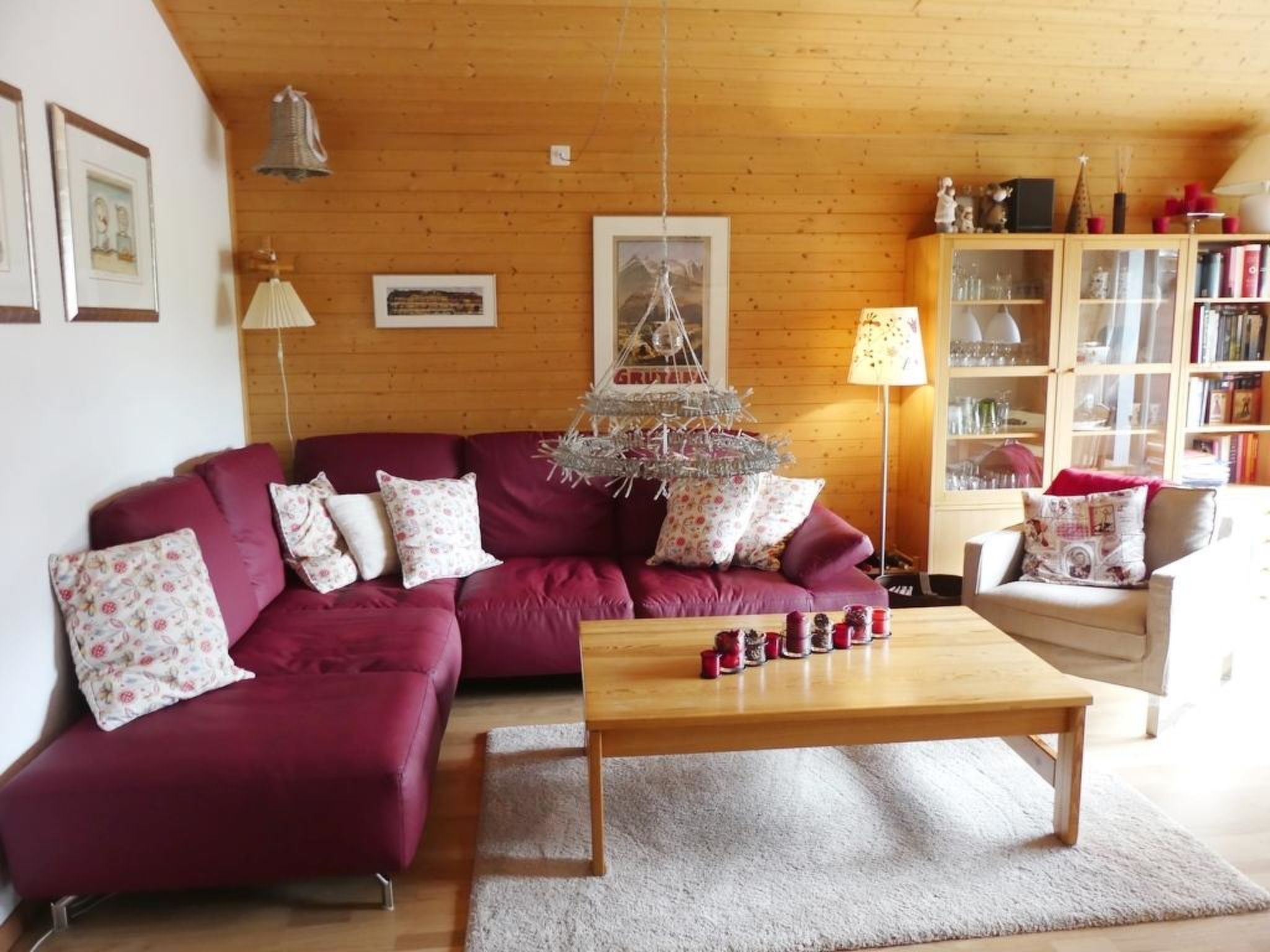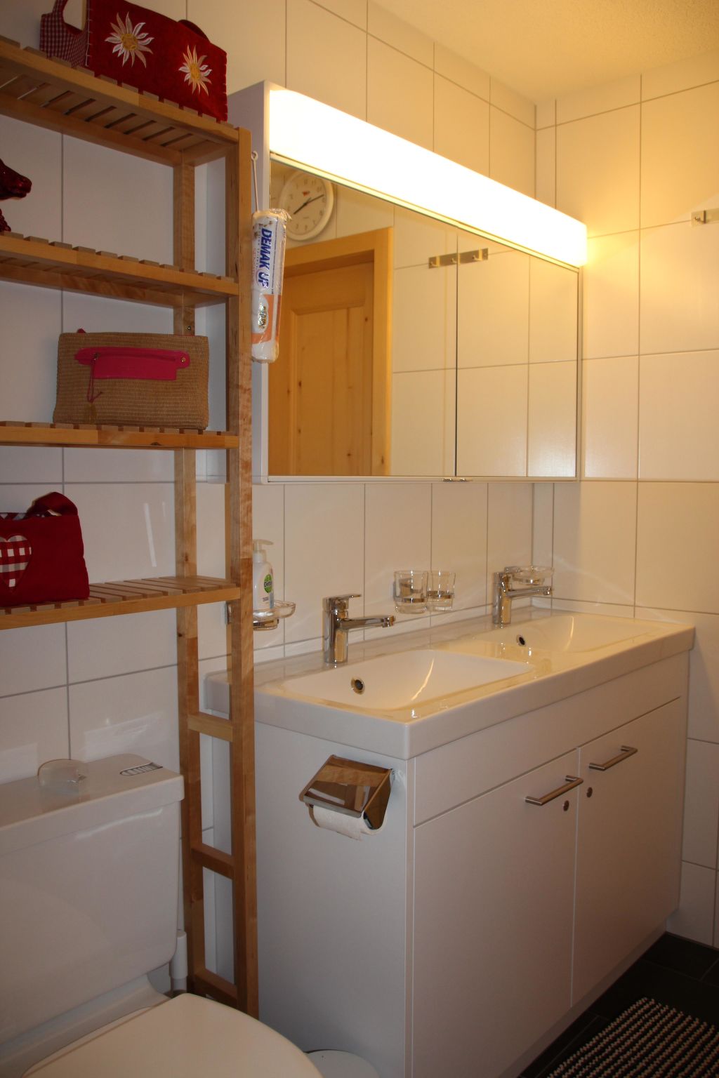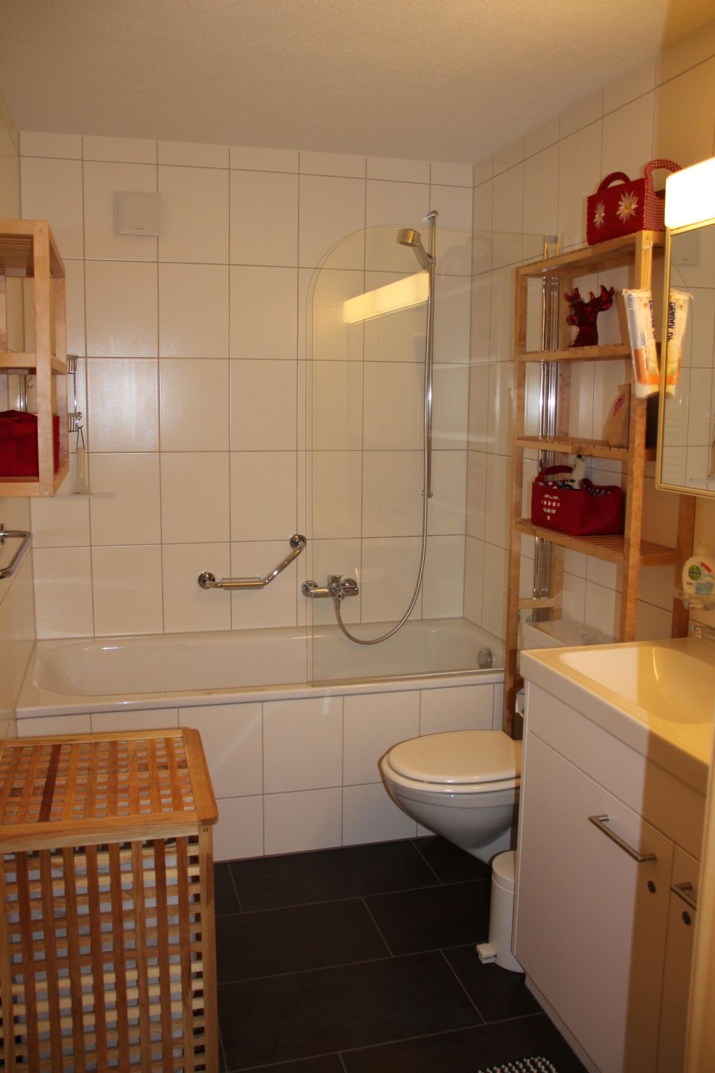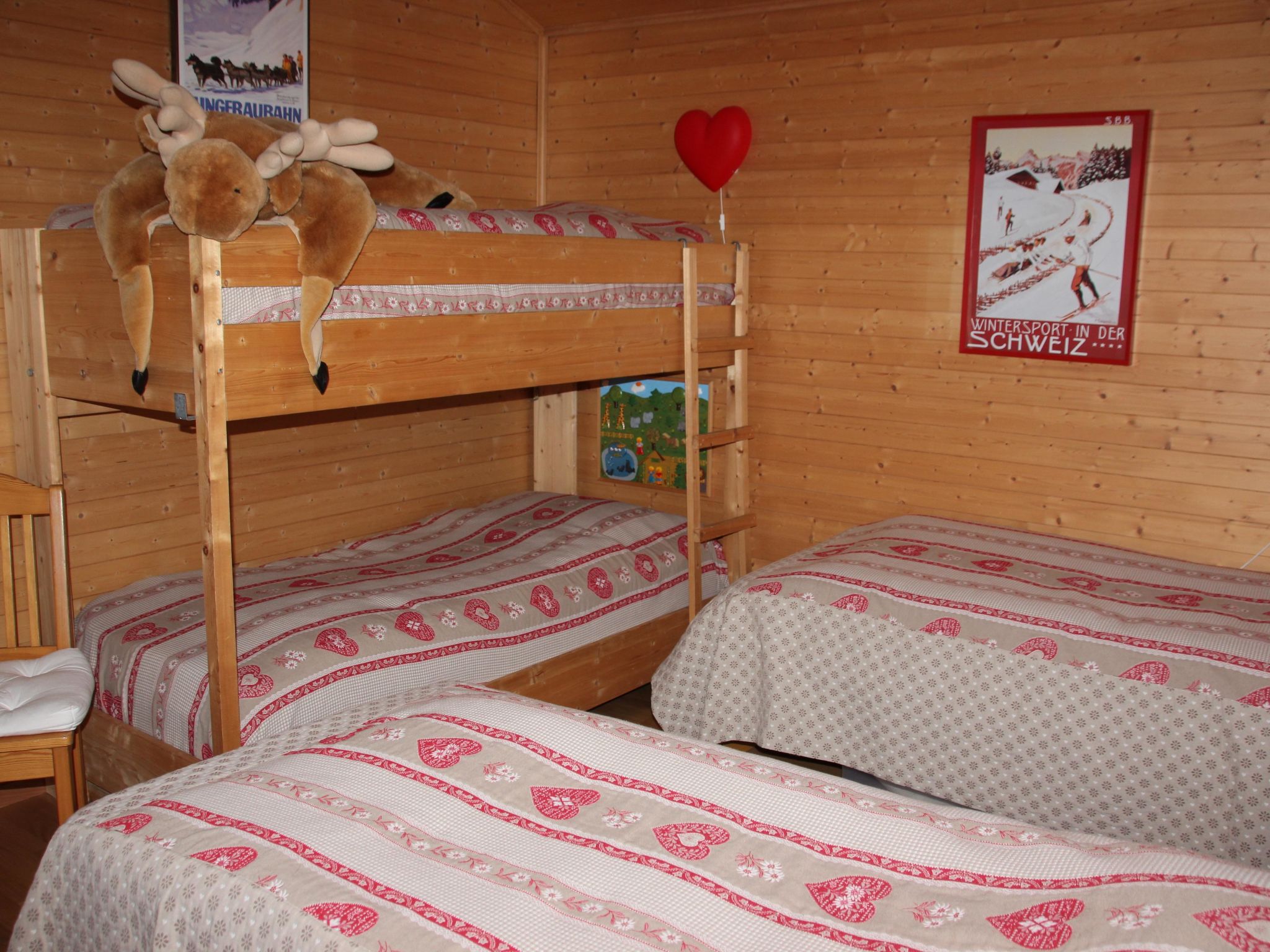Grosses Wohnzimmer mit Balkon (Südsicht), TV/Video/Radio, grosser Esstisch und Polstergruppe. 1 Badezimmer mit Bad/WC und 1 separates WC. 1 Doppelschlafzimmer (2x100x200cm) mit Dusche/WC. 1 Schlafzimmer mit zwei Einzelbetten (2x90x200cm) und 1 Etagenbett (2x80x200cm). Separate, neue Küche mit, Mikrowelle, Geschirrspüler, Kühlschrank mit Gefrierfach, Backofen, Kapsel-Kaffeemaschine (Nespresso), Filterkaffeemaschine sowie Fondue- und Raclette-Set. WiFi. Hinweis: die Ferienwohnung eignet sich nicht für Allergiker. Kinderbett (65x120cm, exkl. Bettwäsche) und Kinderhochstuhl vorhanden.