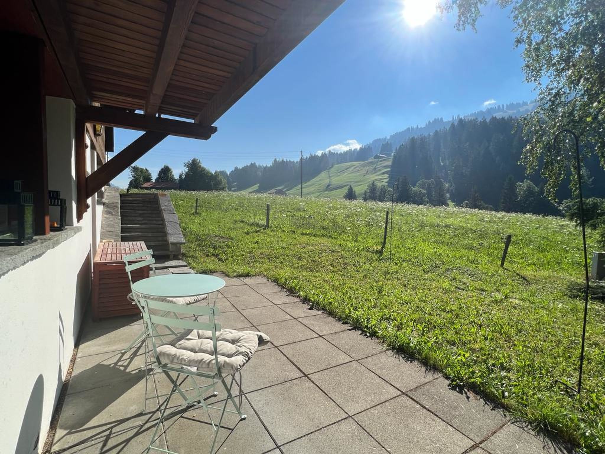 50 m2. Weitere Angaben des Anbieters: Charmante und sonnige 2-Zimmerwohung (50m2) im Erdgeschoss eines typischen Chalets, liebevoll und elegant eingerichtet. Mit fantastischer Aussicht auf das Saanenland und direktem Zugang zum sonnigen Gartensitzplatz. In unmittelbarer Nähe vom Bahnhof Schönried, den Geschäften und dem Skigebiet Horneggli gelegen. Idealer Ausgangspunkt zum Wandern, Biken und Skifahren. 1 ungedeckter Parkplatz. Im Winter 4x4 oder Schneeketten empfohlen (steile Zufahrt).