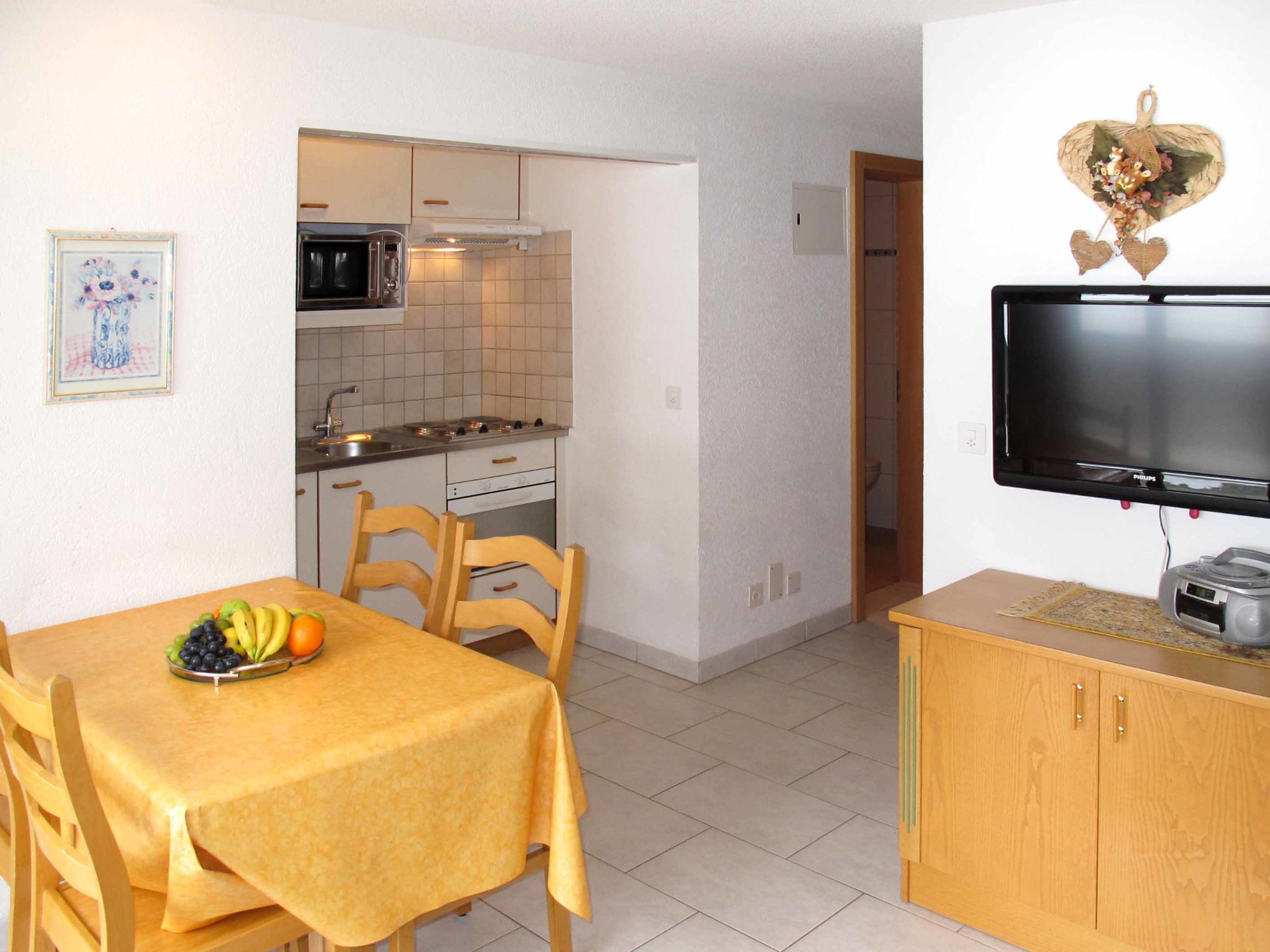 6-Zimmer-Wohnung 96 m2, im Erdgeschoss. Gemütlich eingerichtet: Wohn-/Esszimmer mit 1 Diwanbett, Esstisch und Sat-TV (Flachbildschirm), Radio und DVD. Ausgang zur Terrasse. Wohn-/Esszimmer mit 1 Diwanbett und Sat-TV (Flachbildschirm), Radio und DVD. Ausgang zur Terrasse. 2 Doppelzimmer, jedes Zimmer mit Dusche/WC. 2 Doppelzimmer. Offene Küche (6 Kochplatten, Backofen, Mikrowelle, elektrische Kaffeemaschine, Fondue Set (Käse)). 2 Duschen/WC. Ölheizung. 2 Terrassen, Südlage. Terrassenmöbel, Liegestühle (2). Schöne Sicht auf die Berge und die Ortschaft. Zur Verfügung: Internet (Wireless LAN, gratis). Bitte beachten: Nichtraucher-Unterkunft.