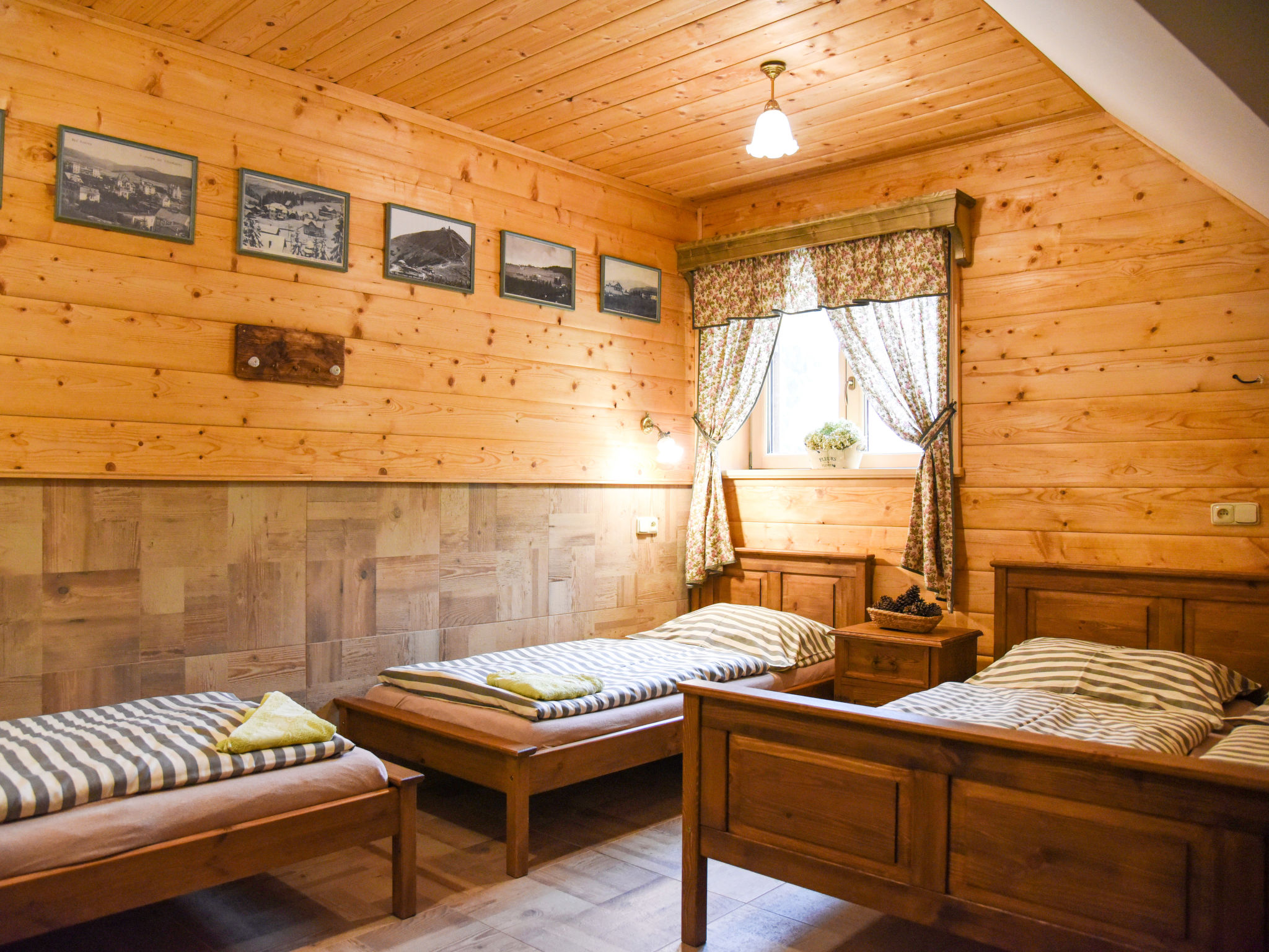Komfortables Chalet 770 m.ü.M., auf 2 Stockwerken, renoviert im Jahre 2017. 5 Wohnungen im Ferienhaus. 50 m vom Zentrum von Pec pod Sněžkou, am Ortsrand, 2.6 km vom Zentrum von Velká Úpa, 24 km vom Zentrum von Černý Důl, zentrale Lage, 500 m vom Skigebiet, 5 m vom Fluss. Zur Mitbenutzung: Grundstück 300 m2. Im Hause: Zentralheizung. Parkplatz (beschränkte Anzahl) auf dem Grundstück. Einkaufsgeschäft, Supermarkt 200 m, Einkaufszentrum 13 km, Bushaltestelle "Pec pod Sněžkou" 200 m, Freibad 20 km, Hallenbad 200 m. Golfplatz (18 Loch) 15 km, Tennis 200 m, Skilift 500 m, Sessellift 900 m, Skipisten 500 m, Skiverleih 200 m, Skischule, Kinderskischule, Kinderspielplatz 900 m. Nahe gelegene Sehenswürdigkeiten: Sněžka 8 km, Mladé Buky 15 km, Jánské Lázně 20 km. Bekannte Skigebiete sind gut erreichbar: Pec pod Sněžkou 500 m. Bekannte Seen in der Umgebung sind gut erreichbar: Dolce 20 km. Bitte beachten: Der Besitzer wohnt im selben Haus.