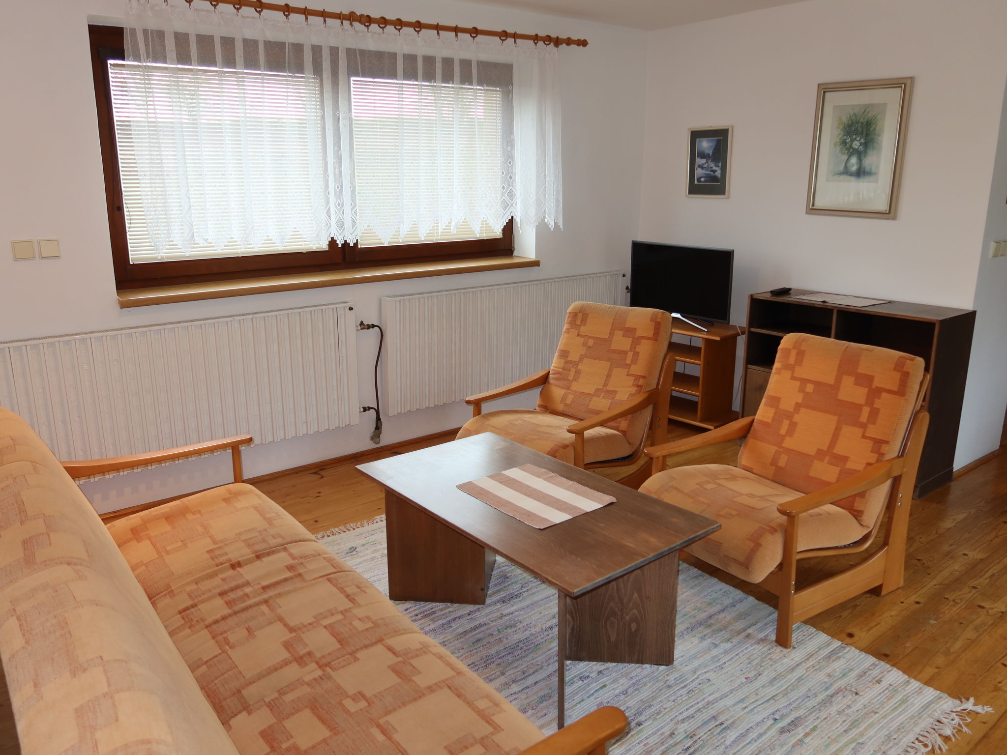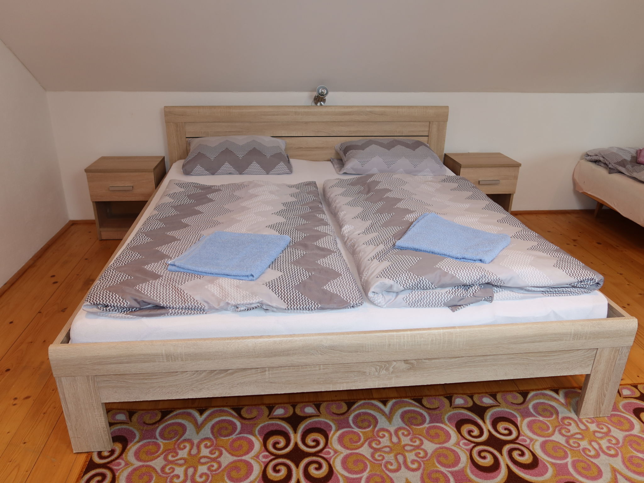 4-Zimmer-Doppelhaushälfte 120 m2 auf 2 Stockwerken. Zweckmässig eingerichtet: Wohn-/Esszimmer 30 m2 mit Sat-TV (Flachbildschirm), Radio. Ausgang zum Garten. 1 Zimmer mit 1 Doppelbett. Kochnische (Backofen, Geschirrspüler, 4 Glaskeramikherd Platten, Mikrowelle, Tiefkühler, elektrische Kaffeemaschine). Bad/Dusche, Bidet, sep. WC. G-Heizung. Obergeschoss: abgeschrägtes Durchgangszimmer 30 m2 mit 3 Betten (82 cm, Länge 192 cm), 1 Diwanbett (150 cm, Länge 200 cm), sep. WC. 1 abgeschrägtes Zimmer mit 1 Bett (82 cm, Länge 192 cm), 1 Doppelbett. Ausgang zur Loggia. Sep. WC. Schöne Sicht auf die Landschaft. Zur Verfügung: Waschmaschine, Babybett. Bitte beachten: Nichtraucher-Haus. 2 Haustiere/Hunde erlaubt. Das Zimmer im Obergeschoss führt ins Zimmer mit Loggia.