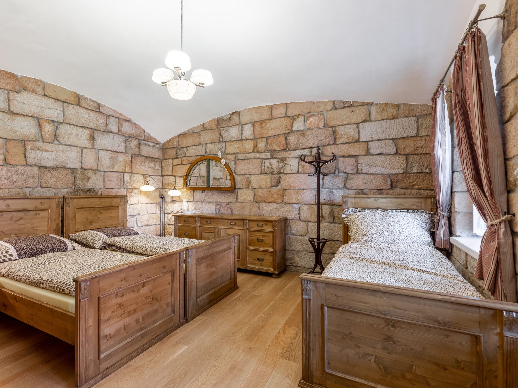 "Dolní Olešnice", 5-Zimmer-Bauernhaus. Komfortabel und stilvoll eingerichtet: Wohnzimmer mit Sat-TV und Kachelofen. 1 Zimmer mit 1 Doppelbett. 1 Zimmer mit 1 Bett und 1 Doppelbett. 1 Zimmer mit 1 Doppelbett. 1 Zimmer mit 1 Bett, 1 Doppeldiwanbett, 1 Doppelbett und Sat-TV. Kochnische (4 Kochplatten, Backofen) mit Essecke. Bad/Dusche, sep. WC, Bad/Dusche/WC. Terrasse. Terrassenmöbel. Zur Verfügung: Internet (DSL/LAN, gratis).