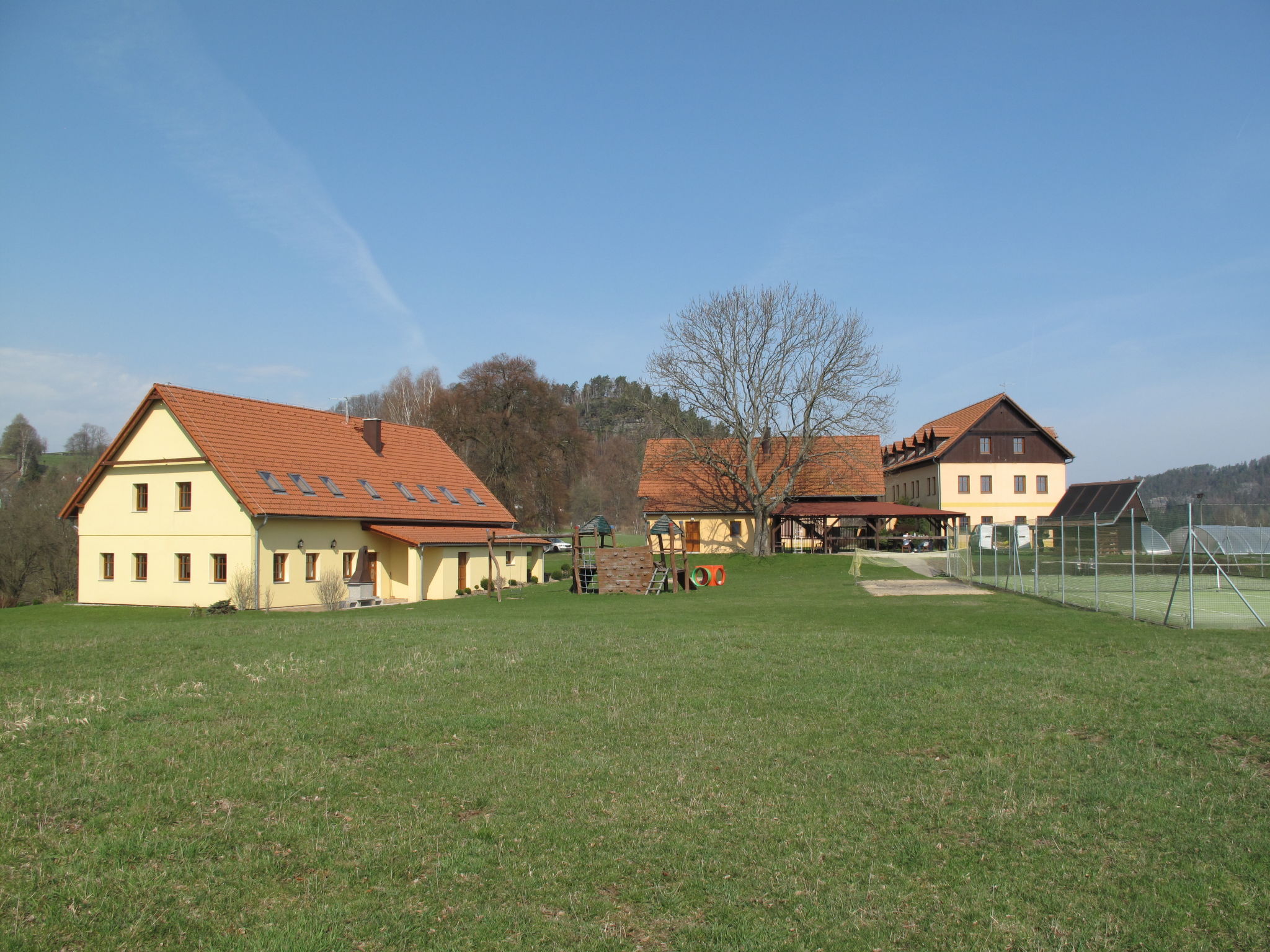 Vysoka Lipa, 15 km von Ceska Kamenice: Modernes, schönes Appartementhaus "Hofberg", auf 3 Stockwerken, Baujahr 2004. Am Ortsrand, alleinstehende, ruhige, sonnige Lage am Hang, im Grünen. Zur Mitbenutzung: Grundstück, Schwimmbad beheizt (9 x 5 m, saisonale Verfügbarkeit: 25.Jun.-30.Sep.). Tennis (extra), Sitzplatz (40 m2), Grill. Im Hause: Aufenthaltsraum, Einstellraum für Fahrräder, Zentralheizung, Alarmanlage. Frühstück möglich. Zufahrt bis zum Haus. Parkplatz auf dem Grundstück. Lebensmittelgeschäft 150 m, Einkaufszentrum 5 km, Restaurant, Bushaltestelle 150 m. Bitte beachten: Das Foto ist nur ein Hausbeispiel. In diesem Haus sind weitere Ferienwohnungen mietbar. Alle Häuser/Wohnungen sind individuell eingerichtet.