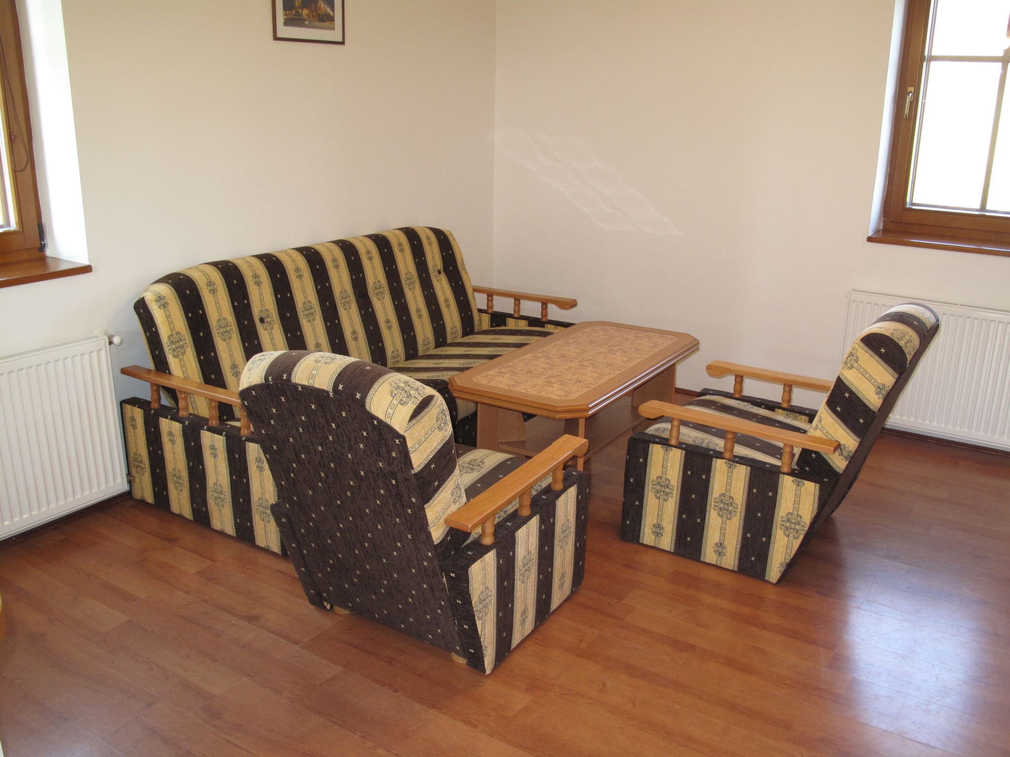 2-Zimmer-Wohnung 60 m2. Sehr schön und modern eingerichtet: Wohn-/Schlafzimmer mit 2 Betten und 1 Doppeldiwanbett (140 cm), Sat-TV. 1 Doppelzimmer. Küche (2 Kochplatten, Backofen, Wasserkocher, Mikrowelle, Tiefkühler). Bad/WC. G-Heizung. Abstellkammer. Schöne Sicht auf die Landschaft. Zur Verfügung: Babybett bis 6 Jahre. Internet (Wireless LAN, gratis). Bitte beachten: Maximal 2 Haustiere/Hunde erlaubt.