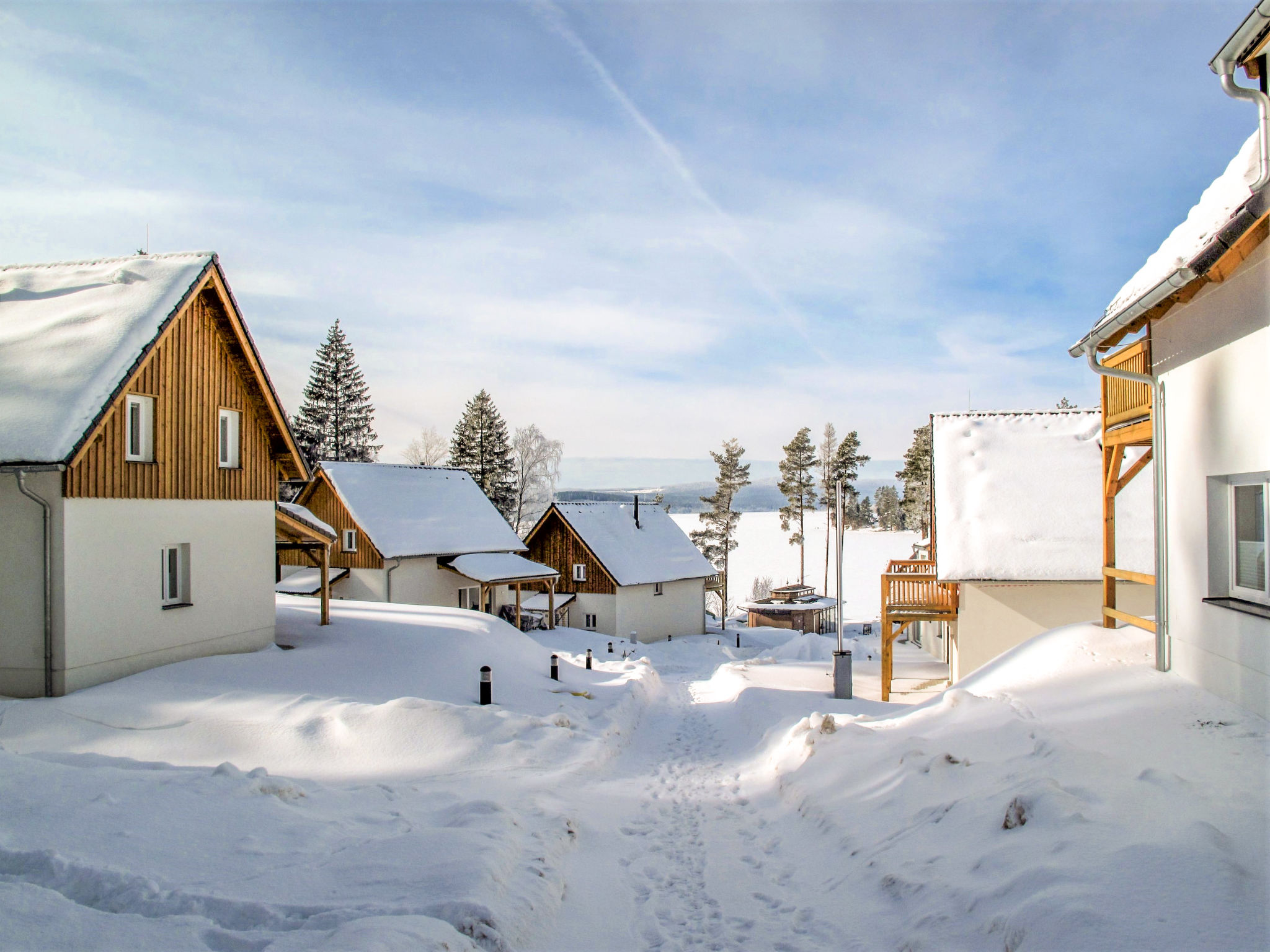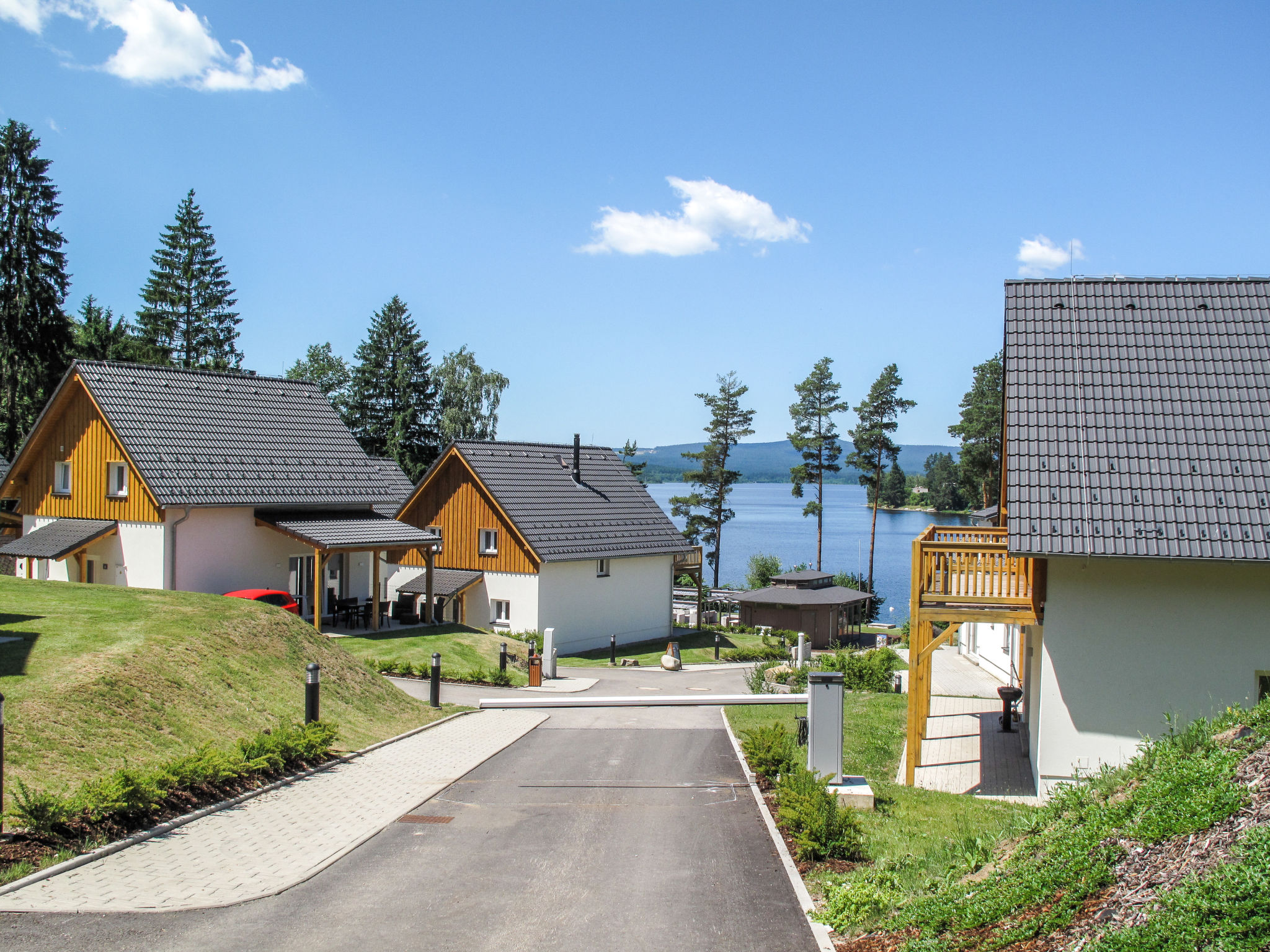 Kinderfreundliche, moderne Ferienanlage "Lakeside Village". 45 Häuser im Ferienresort. 10 Wohnungen in der Residenz. Ausserhalb des Ortes, ruhige, sonnige Lage, direkt am See. Zur Mitbenutzung: Grundstück. Privatstrand, Beachvolleyball, Grill, Feuerstelle, Kinderspielplatz. In der Anlage: Empfang, Bar, Bistro, Sauna, Fitnessraum, Massage, Sprudelbad (alles extra), Kiosk, Fahrräder vorhanden Fahrradverleih. Zur Verfügung: Boot (extra). Brötchenservice und Frühstück auf Anfrage. Im Winter bitte Schneeketten mitbringen. Parkplatz beim Haus. Badesee "Lipno". Reitstall 500 m, Eisfeld 11 km. Nahe gelegene Sehenswürdigkeiten: Aquaworld, Marina Lipno, Bobová dráha, Lanový park, Bikepark (Lipno) 15 km, Český Krumlov (UNESCO) 35 km. Bekannte Skigebiete sind gut erreichbar: Frymburk 5 km, Kramolin 15 km, Sternstein 25 km, Hochficht, Sterngartl 40 km. Wandergebiete: Stezka korunami stromů (Lipno) 15 km. Bitte beachten: Babyausstattung auf Anfrage (extra). Angeln (mit Bewilligung), private Bootsanlegestelle. Das Foto ist nur ein Hausbeispiel. Alle Häuser/Wohnungen sind individuell eingerichtet.