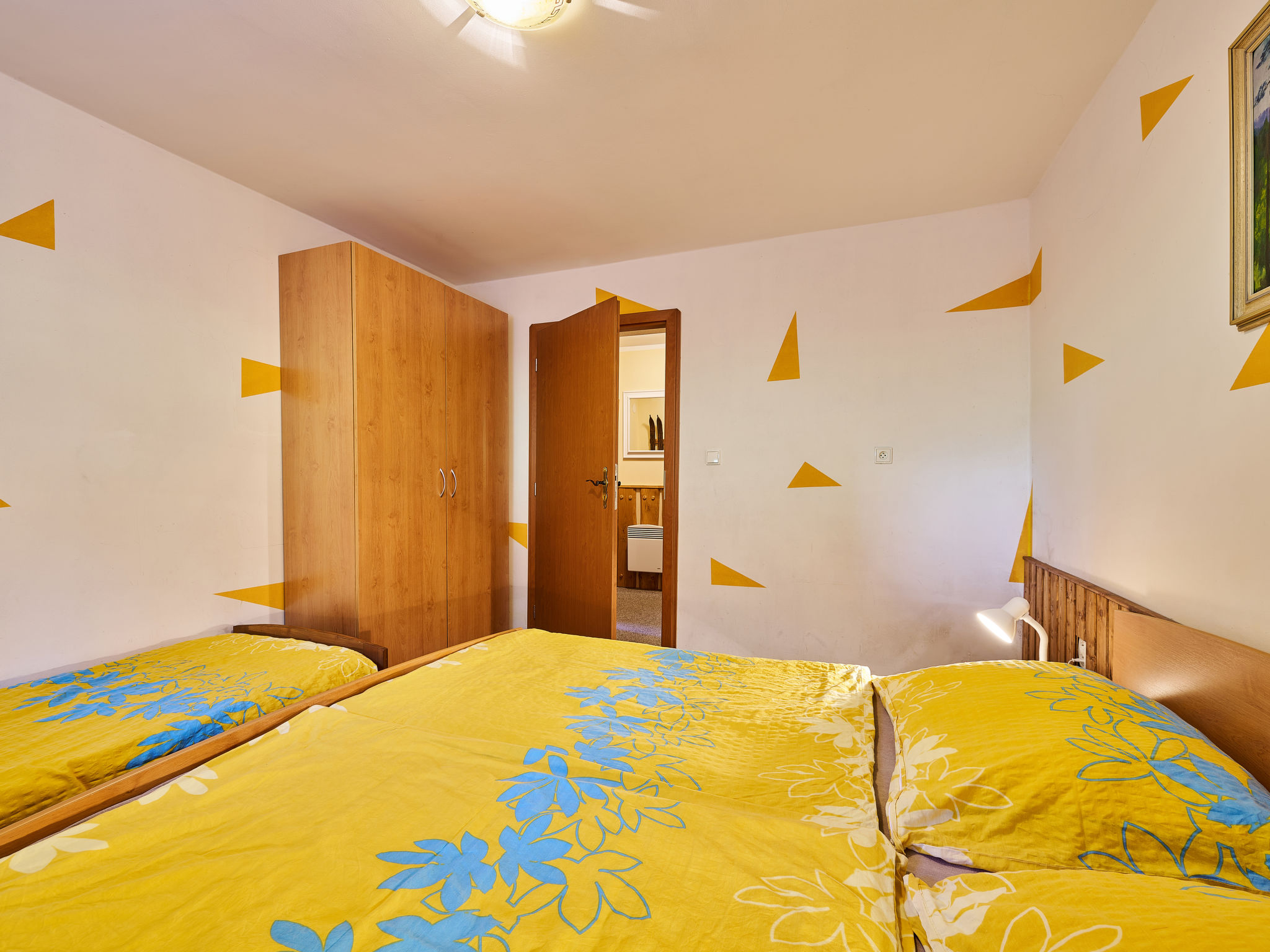 3-Zimmer-Wohnung 69 m2, im erhöhten Erdgeschoss. Wohnzimmer mit 1 Diwanbett und Sat-TV. 2 Zimmer, jedes Zimmer mit 1 Bett und 1 Doppelbett. Kochnische (2 Kochplatten, Wasserkocher, Mikrowelle, Grill, elektrische Kaffeemaschine) mit Esstisch. Dusche/WC. E-Heizung, Boiler. Zur Verfügung: Internet (Wireless LAN, gratis). Bitte beachten: Nichtraucher-Unterkunft. 1 kleines Haustier/Hund erlaubt. Eigener Eingang.
