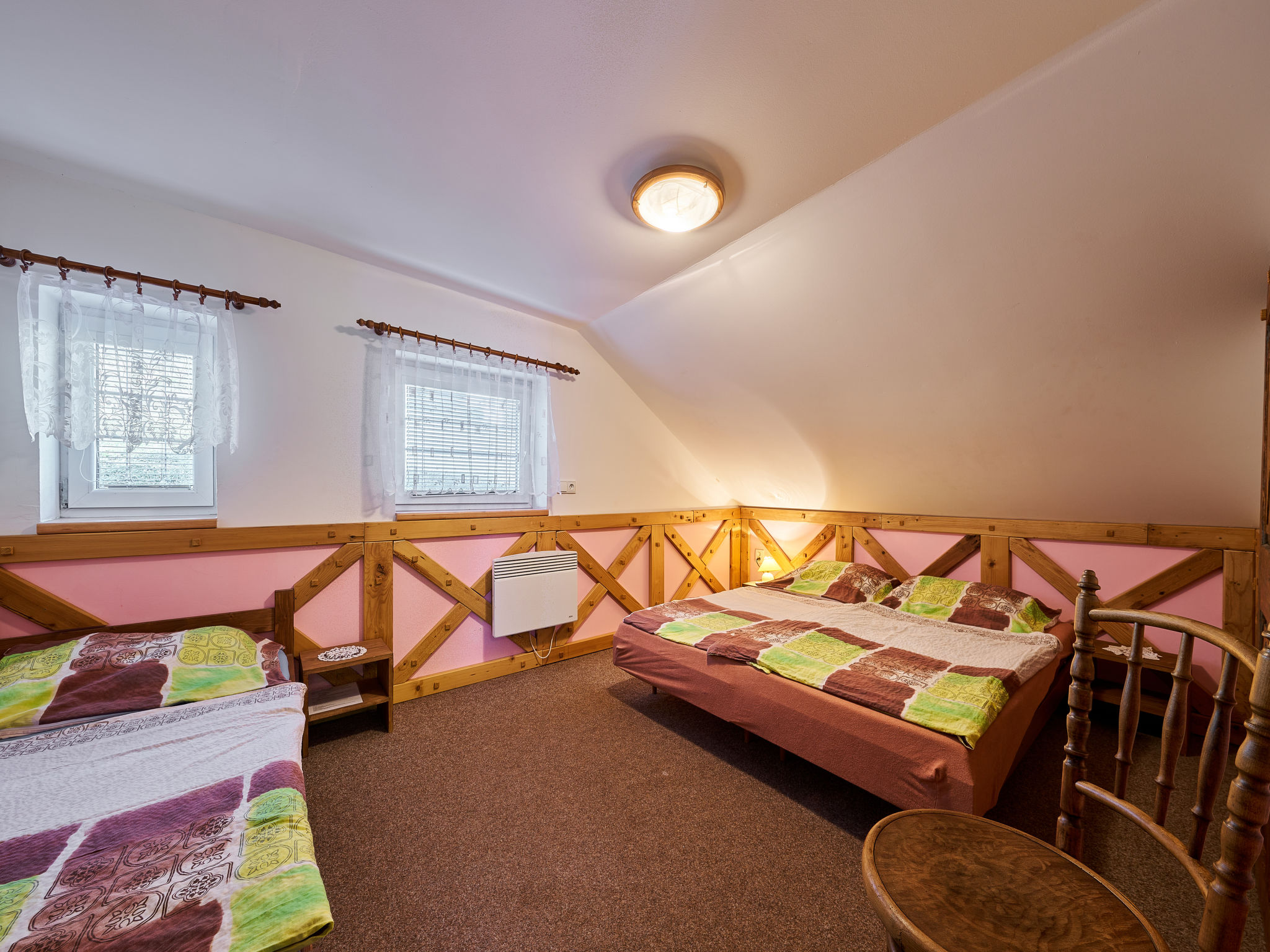 Chlívce 8 km von Hronov: Gemütlicher, alleinstehender Landsitz "Chlívce u Hronova", auf 2 Stockwerken. Ausserhalb des Ortes, ruhige, erhöhte Lage. Zur Mitbenutzung: Grundstück 1'000 m2, Schwimmbad rund (4,60 m Durchmesser, saisonale Verfügbarkeit: 01.Jul.-31.Aug.). Laube, Gartenmöbel, Grill, Feuerstelle, Grillhaus, Kinderspielplatz, Parkplatz beim Haus. Einkaufsgeschäft 3.5 km, Einkaufszentrum 8 km, Restaurant 250 m, Bushaltestelle "Chlívce" 500 m, Bahnstation "Hronov, Červený Kostelec" 8 km, Freibad 9 km, Hallenbad 35 km, Naturbadeteich 4 km. Skilift, Skipisten 200 m, Langlaufloipe 10 m. Nahe gelegene Sehenswürdigkeiten: Muzeum Aloise Jiráska/Hronov 8 km, Adršpašsko-teplické skály 17 km, Broumovské stěny, Náchod 17 km, Ratibořice a Babiččino údolí 20 km, Broumov 28 km, Relaxpark Pec pod Sněžkou 50 km. Bekannte Skigebiete sind gut erreichbar: Radvanice 10 km, Petřikovice 16 km, Mladé Buky 34 km, Janské Lázně 40 km. Bekannte Seen in der Umgebung sind gut erreichbar: vodní nádrž Rozkoš 25 m. Kinderhaus im Garten. Mahlzeiten können auf Anfrage in einem privaten Club (250 m entfernt) arrangiert werden. Dieses Ferienhaus kann als ganzes Haus oder in der Nebensaison separat für 4 voll ausgestattete Apartments gemietet werden.