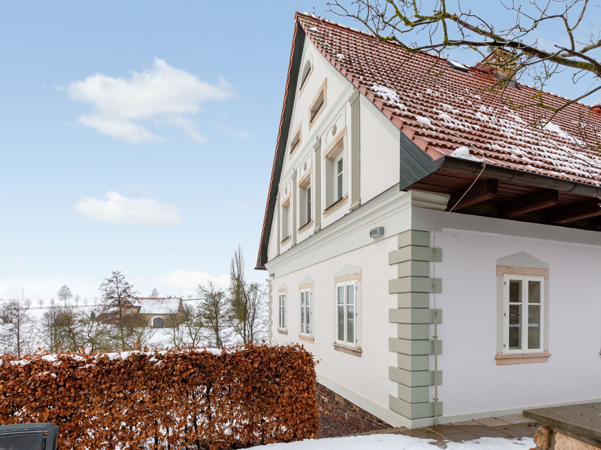 Šonov 7 km von Broumov: Das stilvoll renovierte Haus im Herzen des Landschaftsschutzgebietes Broumovsko ist ein idealer Ausgangspunkt für die Erkundung der natürlichen und historischen Schönheiten der Region Broumovsko und ganz Ostböhmens. Alleinstehendes, komfortables Bauernhaus "Frilo", auf 2 Stockwerken, Baujahr 1863, renoviert. Am Ortsrand, ruhige, sonnige Lage, 2 km vom Waldrand. Zur Alleinbenutzung: Grundstück 150 m2, Schwimmbad (6 x 3 m, 150 cm tief, 01.07.-30.09.). Terrasse, Gartenmöbel, Grill, Feuerstelle, Parkplatz auf dem Grundstück. Einkaufsgeschäft 8 km, Restaurant 8 km, Freibad 15 km. Golfplatz 8 km, Tennis 8 km, Reitstall 10 km, Wanderwege ab Haus, Radweg 10 m, Skilift 14 km, Skipisten 14 km, Angelmöglichkeit 8 km. Nahe gelegene Sehenswürdigkeiten: CHKO Broumovsko, Broumovské stěny 15 km, rozhledna Ruprechtický Špičák 17 km, Police nad Metují 20 km, Kaple Panny Marie Sněžné (Hvězda) 23 km, Adršpašsko-teplické skály 23 km, Góry Stolowe, Kladsko (PL) 22 km. Bekannte Skigebiete sind gut erreichbar: Janovičky 14 km.