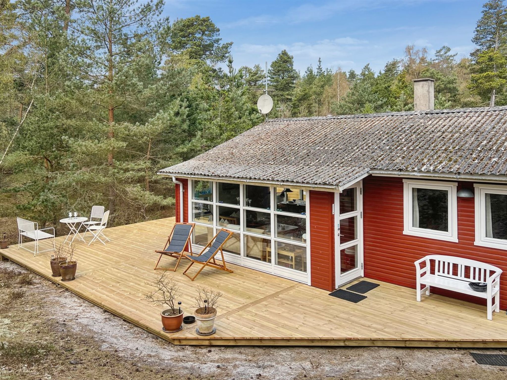 Einfamilienhaus, Baujahr 1972. 900 m vom Meer. Zur Alleinbenutzung: naturbelassenes Grundstück 2'542 m2. Terrasse (70 m2). Im Hause: Waschmaschine. Parkplatz beim Haus. Lebensmittelgeschäft 1 km. Der Besitzer akzeptiert keine Jugendgruppen.