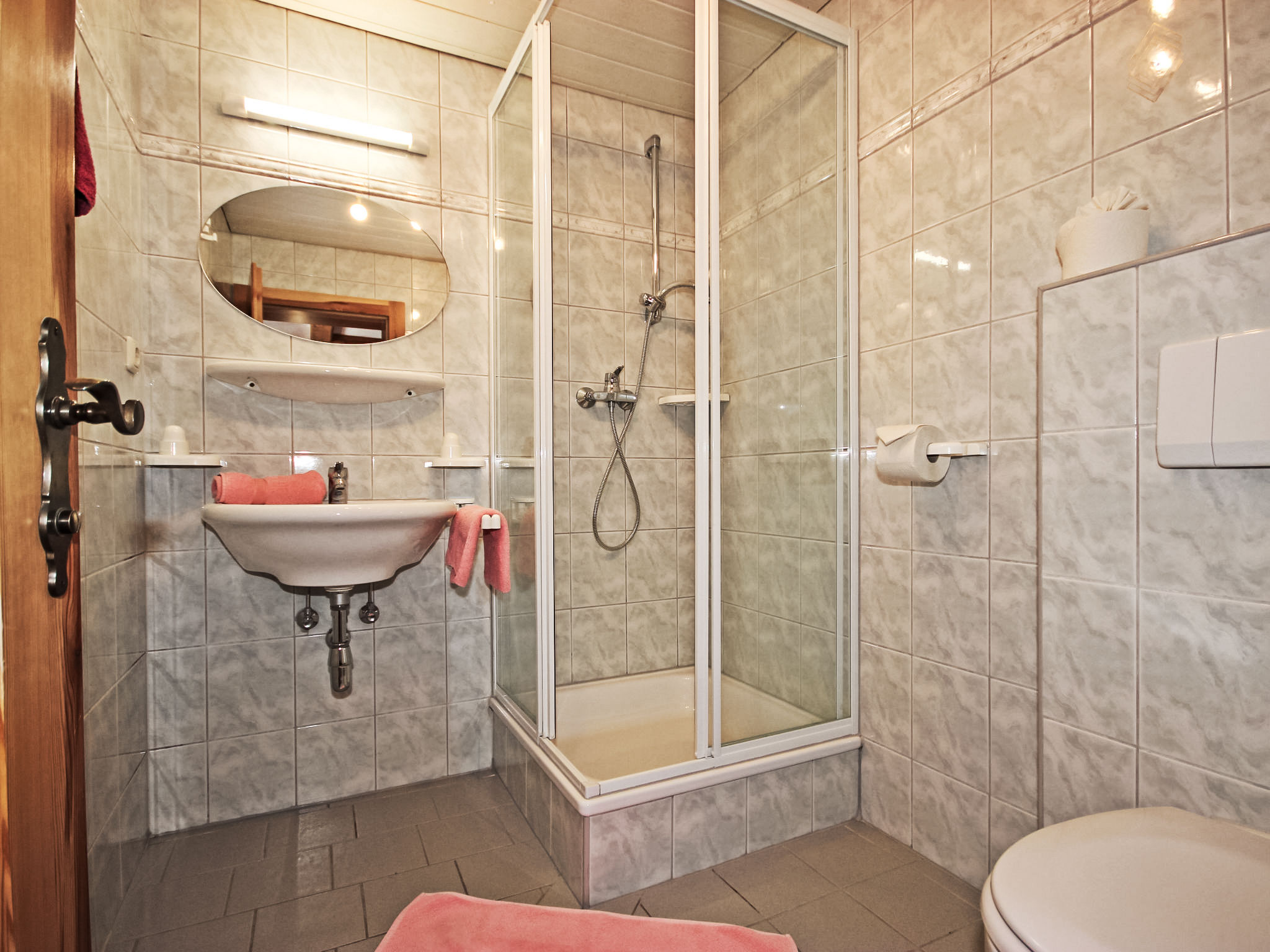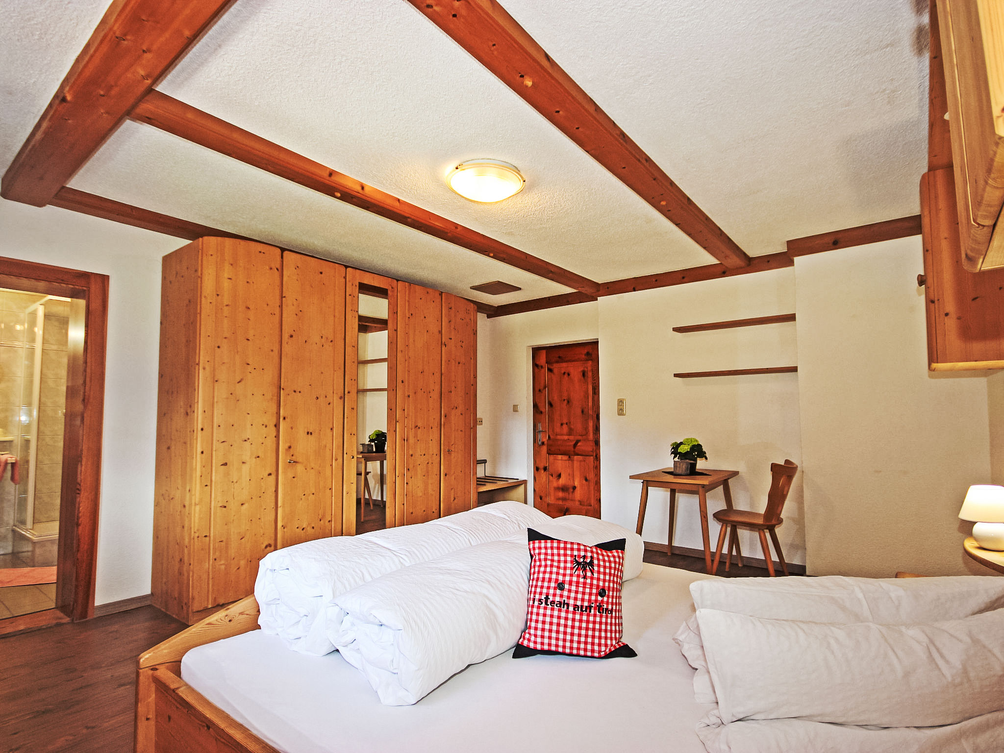 4-Zimmer-Wohnung 130 m2, im Dachgeschoss. Teilweise abgeschrägt, gemütlich eingerichtet: Eingang. 1 Doppelzimmer mit Dusche/WC. 2 Zimmer, jedes Zimmer mit 1 Diwanbett, 1 Doppelbett und Waschbecken. Durchgangszimmer mit 1 Doppeldiwanbett und Sat-TV (Flachbildschirm). Ausgang zum Balkon. Küche (4 Kochplatten, Backofen, Geschirrspüler, Mikrowelle, elektrische Kaffeemaschine, Kapseln für die Kaffeemaschine (Bohnen)) mit Essecke. Dusche, Dusche/WC, sep. WC. Balkon 20 m2. Gartengrill. Herrliche Panoramasicht auf die Landschaft. Zur Verfügung: Kinderhochstuhl, Babybett, Haartrockner. Internet (Wireless LAN, gratis). Geeignet für Familien. 1 Haustier/Hund erlaubt. Die Betten werden je nach Personenanzahl zur Verfügung gestellt.