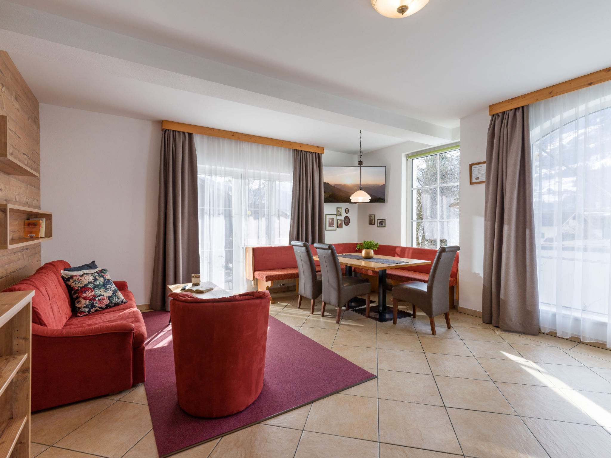 Das Appartementhaus LECHNERS WOHNWELT mit insgesamt 7 Ferienwohnungen steht in sonniger Lage in Stumm, ca. 200 m von der Ortsmitte entfernt. Nächster Supermarkt und Restaurant ca. 50 m. Nach Kaltenbach 1 km. Freibad ca. 600 m, Erlebnistherme und Spieljochbahn in Fügen (6 km). Im Untergeschoss hauseigenes Hallenbad (8 x 5 m) mit Liegestühlen, finnischer Sauna und Erlebnisduschen (ohne Berechnung). Gemeinschaftswaschmaschine/-trockner (Bezahlung). Brötchenservice. Im Haus Käserei mit Verkauf eigener Produkte sowie heimischer Spezialitäten. Im 1,5 km entfernten 'Hotel Seetal' werden auf Wunsch Frühstück, Halbpension und Kosmetikanwendungen angeboten (Buchung und Bezahlung am Ort). Zu den Wohnungen SUZ 376/377 gehört jeweils eine teilüberdachte Terrasse mit Mobiliar nach Süden, mit herrlichem Blick auf die Zillertaler Bergwelt. SUZ 374 mit Balkon (Mobiliar) nach Nordwesten. Jeweils Grill. Parkplätze auf dem Grundstück. Die hilfsbereite Besitzerfamilie wohnt im Haus. Geschmackvolle, komfortable Einrichtung. Fliesen- und Teppichböden. Jeweils Sat-TV, Internetzugang (WLAN, inklusive). Hackschnitzelheizung. Hinweis: Rauchen ist in den Wohnungen nicht gestattet. Winter-Infos: Skibushaltestelle ca. 20 m. Zur Talstation der Hochzillertalbahn in Kaltenbach 1 km. Skiabstellmöglichkeit und Skischuhtrockner.