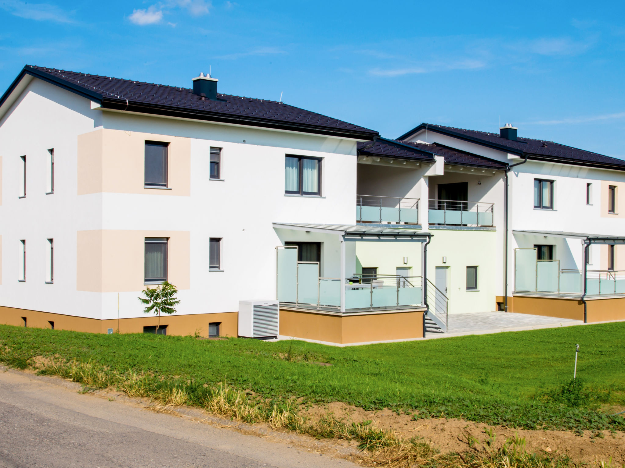 Haus FUCHS mit 4 Ferienwohnungen in 2 Hausteilen steht in einem Wohngebiet, ca. 300 m von der Ortsmitte von Donnerskirchen entfernt. Freibad 'Sonnenwaldbad' (Eintritt mit Neusiedlersee-Card kostenfrei) 1,5 km, über Fußweg 1 km. Guter Einstieg in das umfangreiche Rad- und Wanderwegenetz. Einkaufsmöglichkeit ca. 500 m. Je Wohnung 1 Pkw-Stellplatz. Garage mit Carport € 3/Tag (Anfrage). Die Vermieter halten Ziegen, Hasen und Hühner. Die Ferienwohnungen wurden zur Saison 2015 fertiggestellt. Jeweils überdachter Balkon oder überdachte Terrasse mit Tisch, Stühlen und transportablem Grill. Gute, ansprechende Einrichtung. Kunststoffböden in Holzoptik, Fliesen- und Steinboden. Insektenschutzgitter, Rollläden. Kabel-TV im Wohnraum und in einem Schlafzimmer. Internetzugang (WLAN, inklusive). Abstellraum. Klimaanlage. Fußbodenheizung. Hinweis: Rauchen ist in den Wohnungen nicht gestattet.