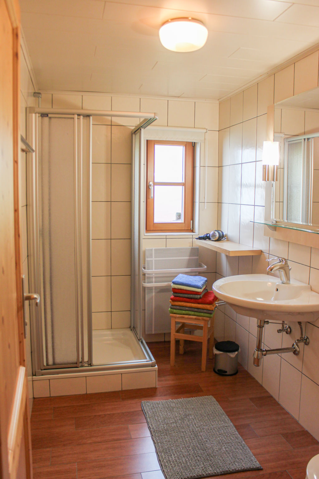 4-Zimmer-Bauernhaus 130 m2. Objekt geeignet für 6 Erwachsene + 3 Kinder. Gemütlich eingerichtet: Eingang. Wohnzimmer mit Sat-TV, Flachbildschirm und Holzofen. 1 Zimmer mit 1 Bett, 1 Doppelbett und Kachelofen. Ausgang zum Balkon. Wohnküche (4 Kochplatten, Backofen, Geschirrspüler, Tiefkühler, elektrische Kaffeemaschine) mit Esstisch und Holzofen. Dusche/WC. Obergeschoss: 2 Zimmer, jedes Zimmer mit 1 Bett, 1 Doppelbett und E-Heizofen. Balkon. Balkonmöbel. Sehr schöne Panoramasicht auf die Berge. Zur Verfügung: Sauna. Bitte beachten: Nichtraucher-Haus. Maximal 3 Haustiere/Hunde erlaubt. Rauchmelder, Feuerlöscher. Der Holzofen ist ein Pelletsofen. Die Sauna hat einen Aussenzugang.